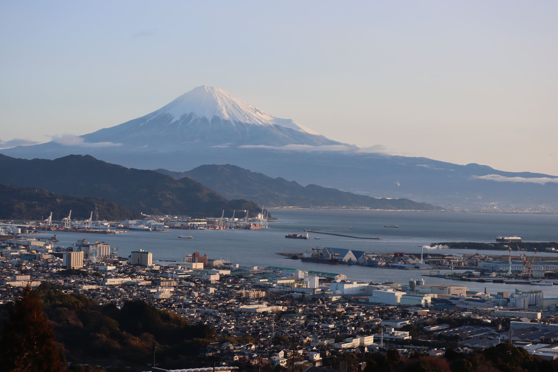 清水港は、日本一深い駿河湾(水深2,550m)に面し、静岡県のほぼ真ん中に位置します。三保半島が防波堤のように港を守っているため、波がとても穏やかで美しい港です。東海道五十三次にも登場する富士山や三保の松原に囲まれた景観の良さから、日本三大美港といわれています。 三保半島が防波堤の役割を持ち、湾内がとても穏やかなこと、利便性のよさなどから次第に貿易も増加し、特定重要港湾として地域発展に貢献してきました。 日本で消費されるマグロの約半分は清水港で揚がり、冷凍マグロ水揚げ日本一を誇ります。