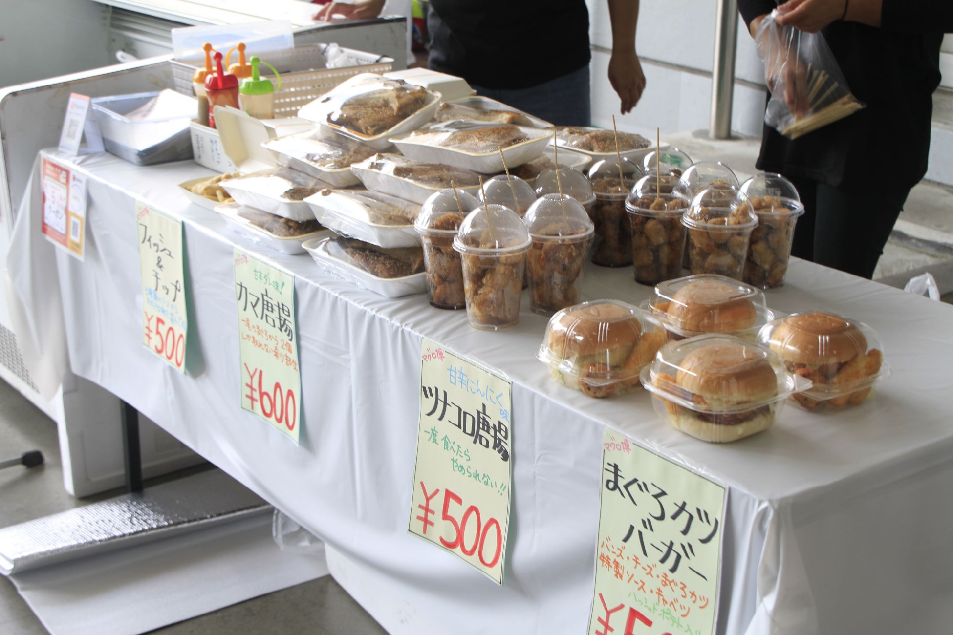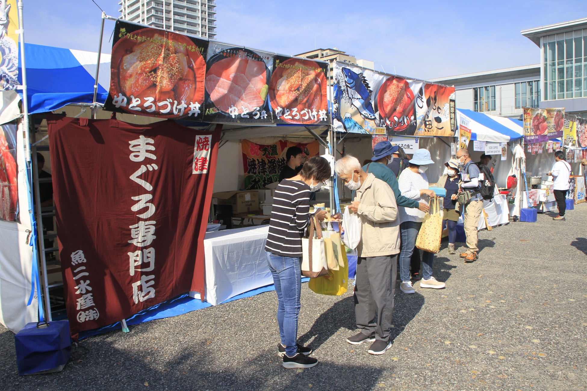 マグロのカマ詰め放題など、水揚量日本一の清水港だからこそできる大変お得な物販コーナーです。マグロを使ったお惣菜も販売します。