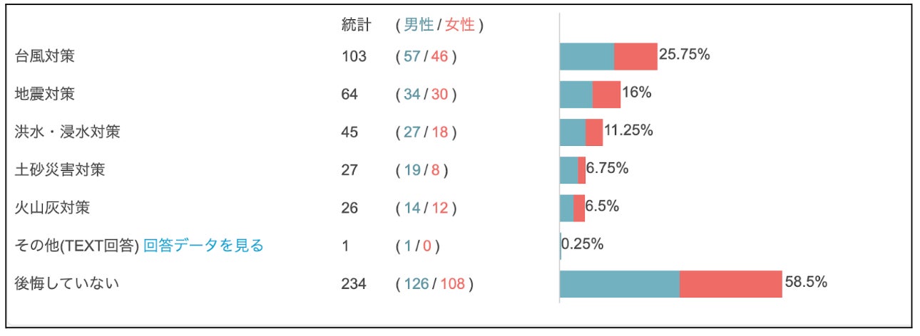 Q:自然災害に備えてどの対策をしなかったことを後悔していますか。