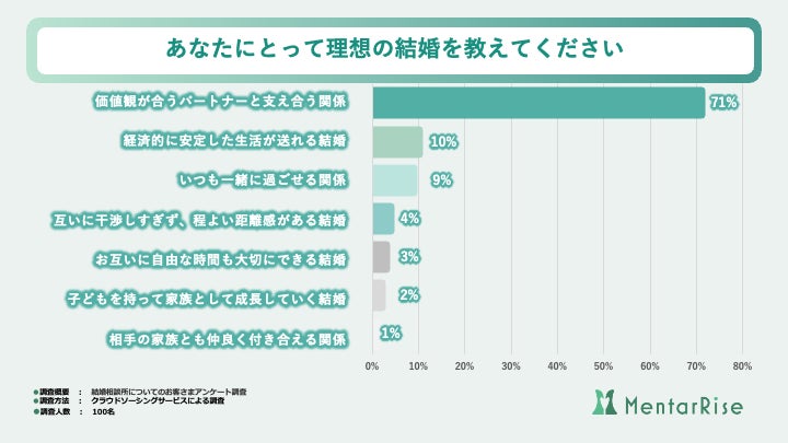 【価値観が合うパートナーと支え合う関係が理想の結婚と約7割のユーザーが回答】