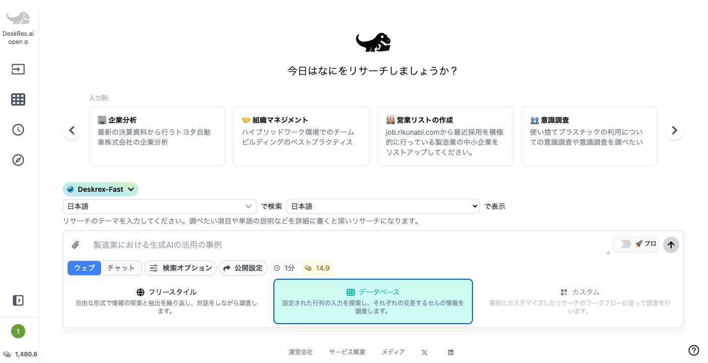 Deskrex、AIエージェント「Deskrex App」で、営業リストや企画案を作れるデータベースリサーチ機能を提供開始