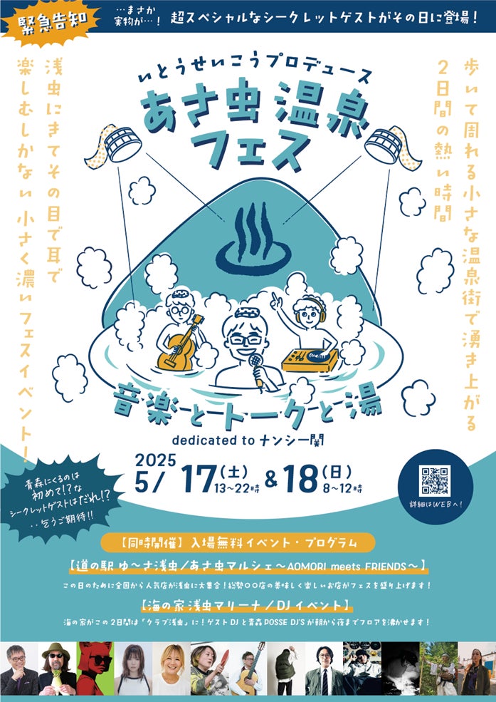 いとうせいこうプロデュース!『あさ虫温泉フェス』〜音楽とトークと湯〜青森・浅虫温泉で初開催!当日は誰もが驚くスペシャルゲストが登場!ナンシー関の特別企画展や菩提寺での法要も。