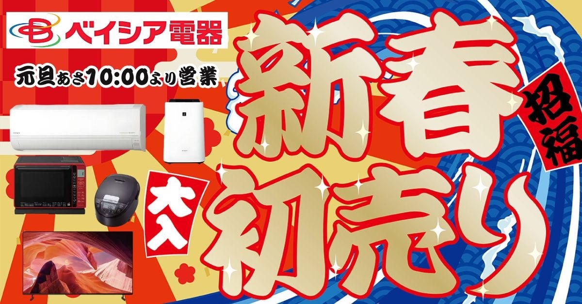 ベイシア電器では、2025年の初売りは、元旦の1月1日(水)午前10時より開催いたします。