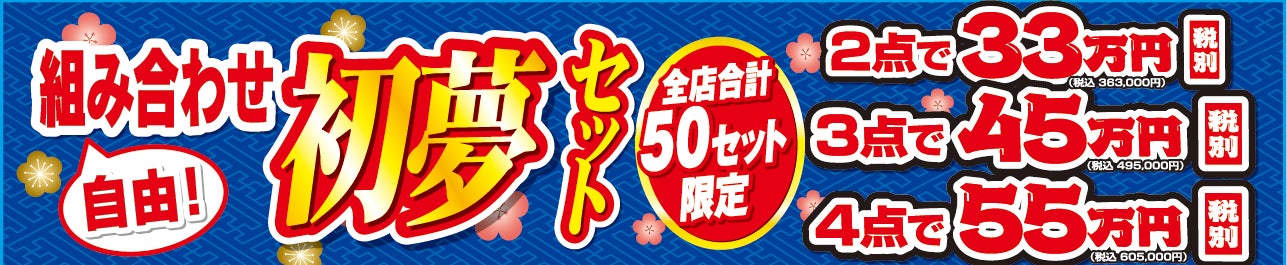 TV、冷蔵庫、ドラム式洗濯機、エアコンなど、当社指定機種を組み合わせ自由で選べることができます。2点で33万円、3点で45万円、4点で55万円と大変お買得な『初夢価格』でご提供いたします。