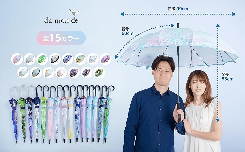 「お気に入りの1本をいつまでも大切に使い続けたい」という想いから生まれた、雨晴兼用のレディース傘です。静岡弁の「~だもんで(~だから)」を冠したその名には、「雨の日だからこそ、気分が上がる傘」という作り手の願いが込められています。