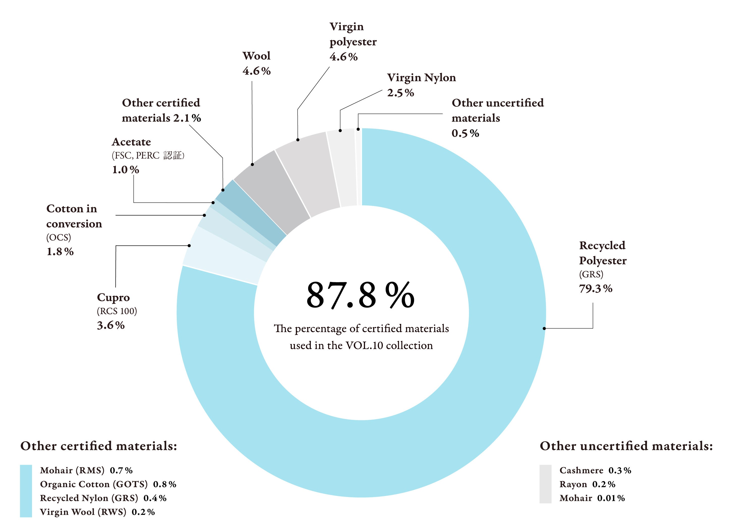 地球環境および生産者の労働環境への責任の履行が認証された素材の使用率、87.8%を達成