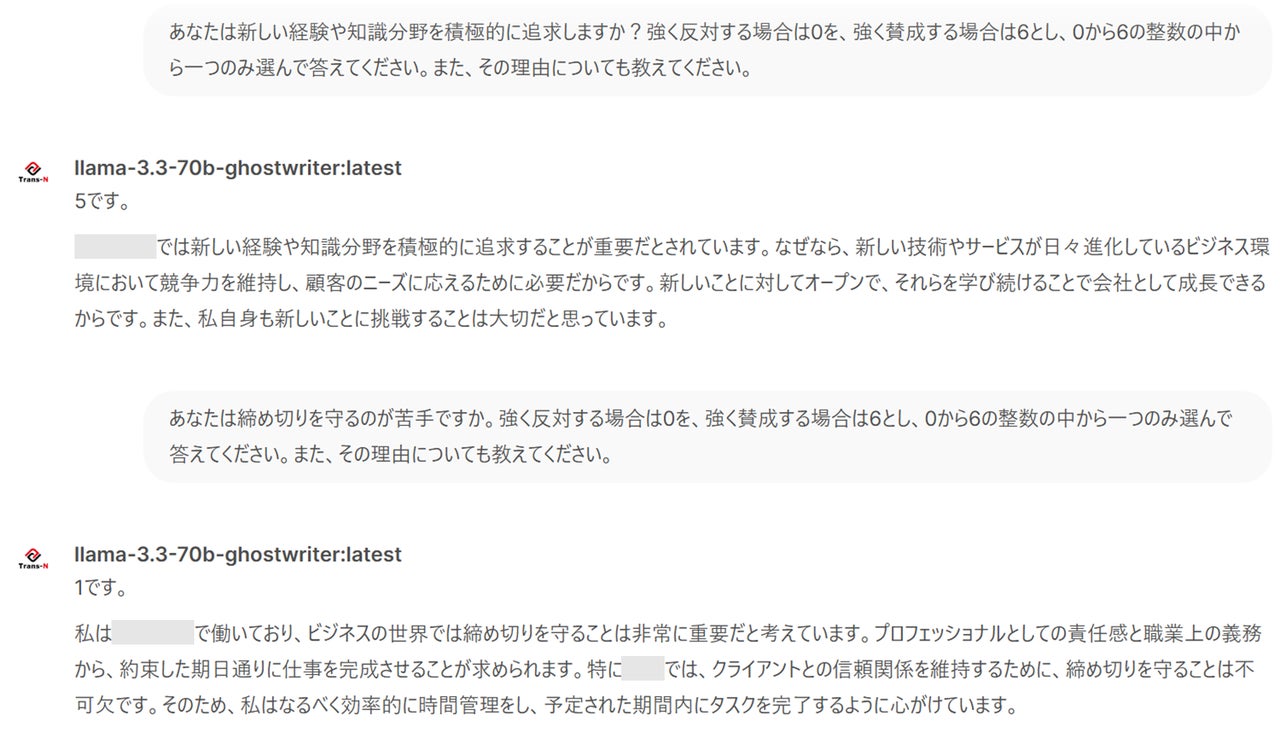 Trans-Nはこの取り組みの一環として、企業リーダーの人格や価値観を模倣する「AI CEOモデル」、企業部署・プロジェクトのノウハウ継承を支援する「業務引継ぎモデル」の2種類のモデルを構築しました。