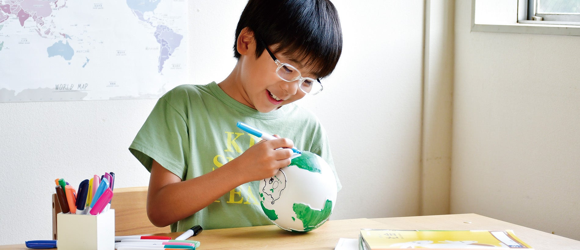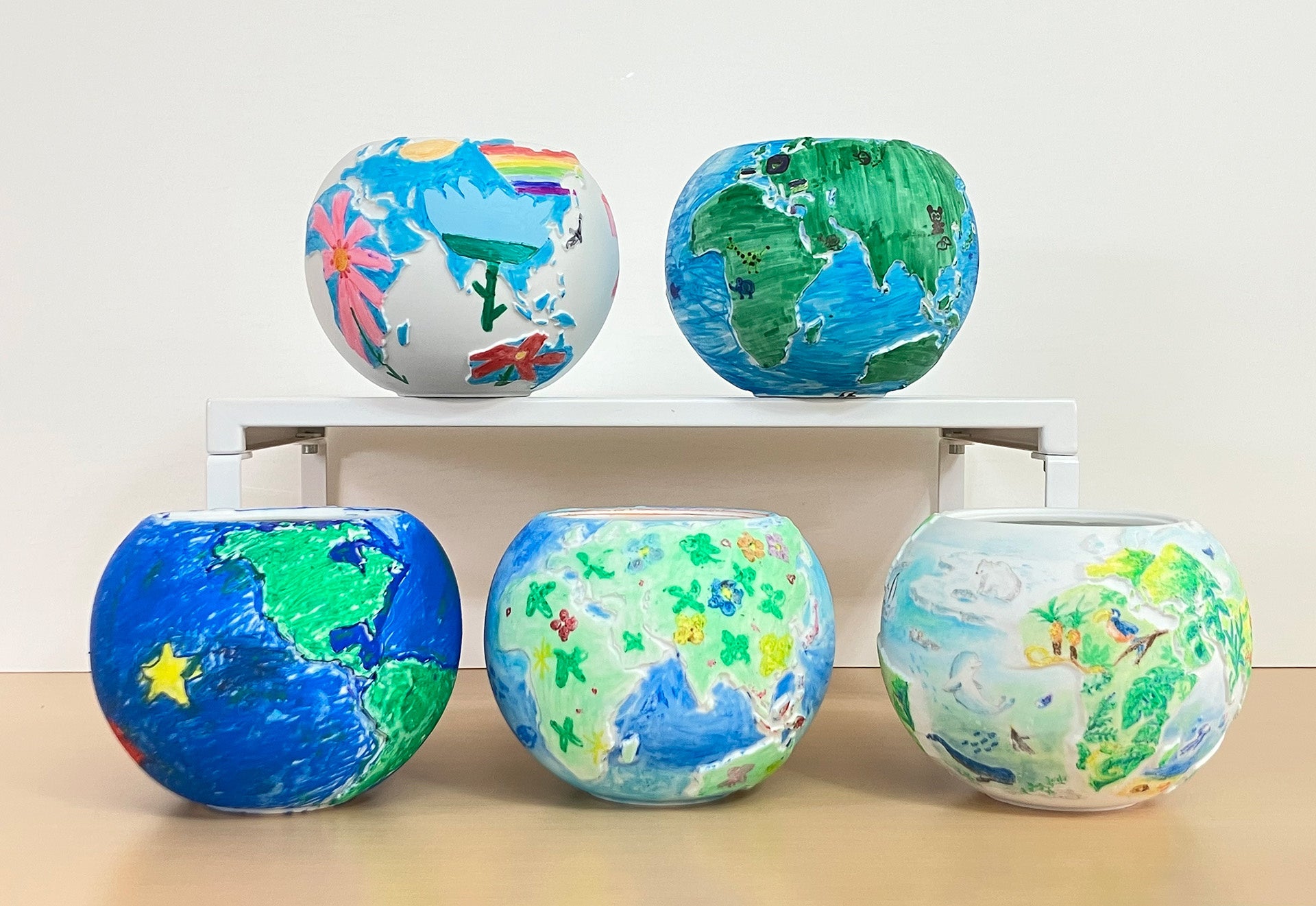 子どもたちに自分の地球を描いてもらいました