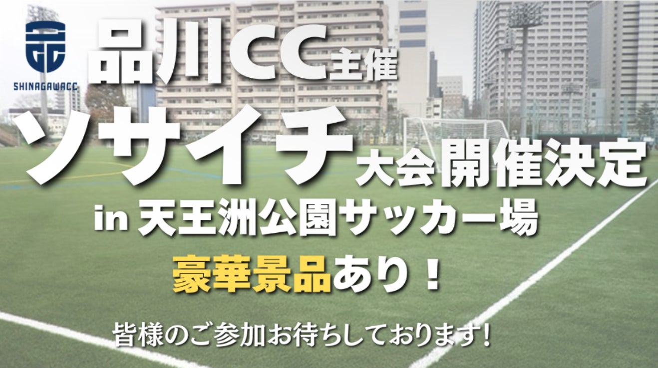本大会は 8人制ミニサッカー(ソサイチ)形式 で行われ、「エンジョイ志向」 の大会として、初心者から経験者まで幅広いプレーヤーが楽しめる内容となっています。優勝チームには 品川CCオリジナルシャツ(10枚) をはじめ、豪華賞品を用意。また、品川区の賞品をかけた ミニゲーム大会も実施予定です。