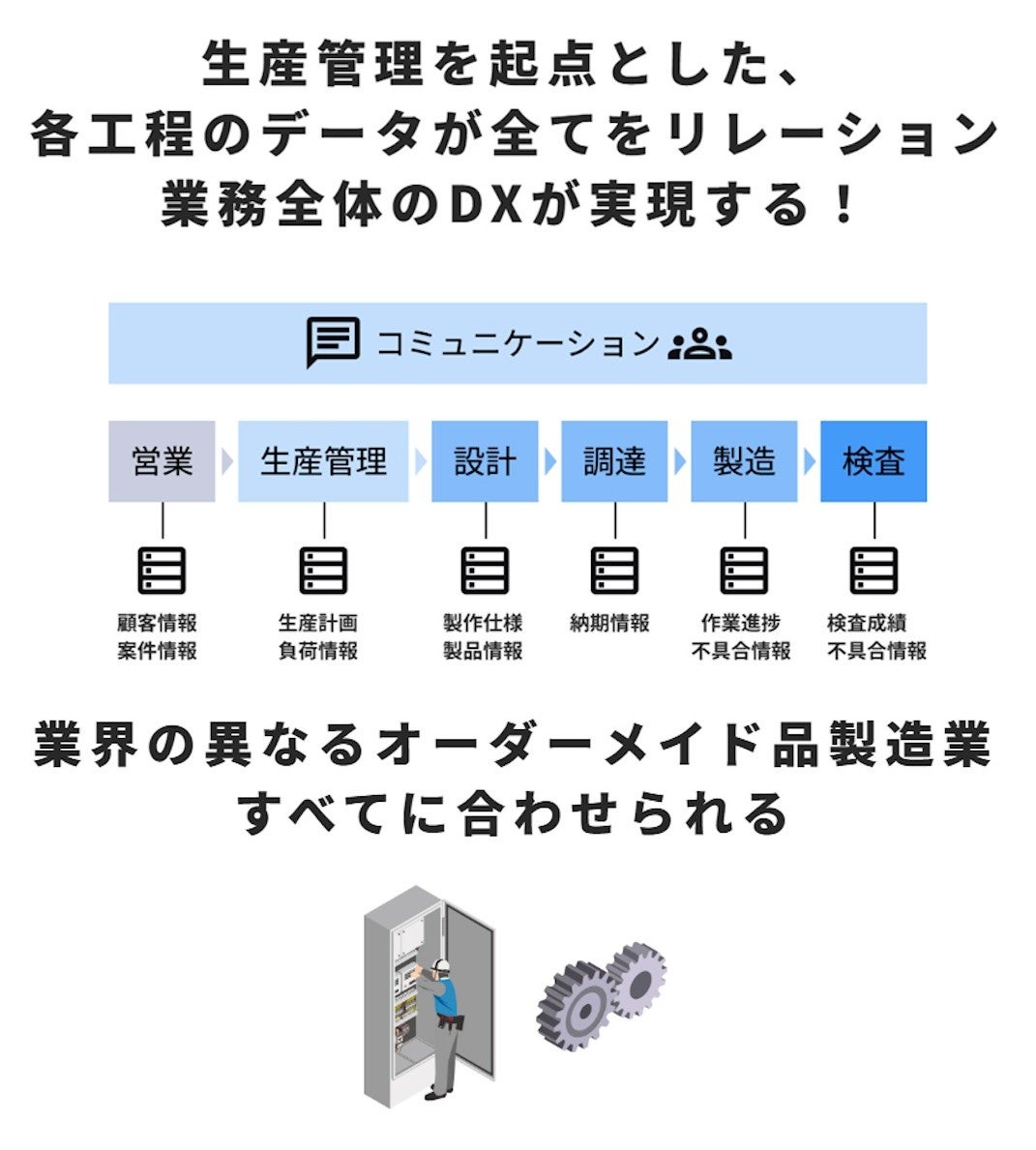 制御盤製造を行っている当社は複数プラットフォーム運用による非効率を解消するため、独自システムを開発しました。業界を問わず活用でき、生産性向上に貢献します。さらに、各部門情報を一元管理し、大幅な作業時間短縮を促進します。