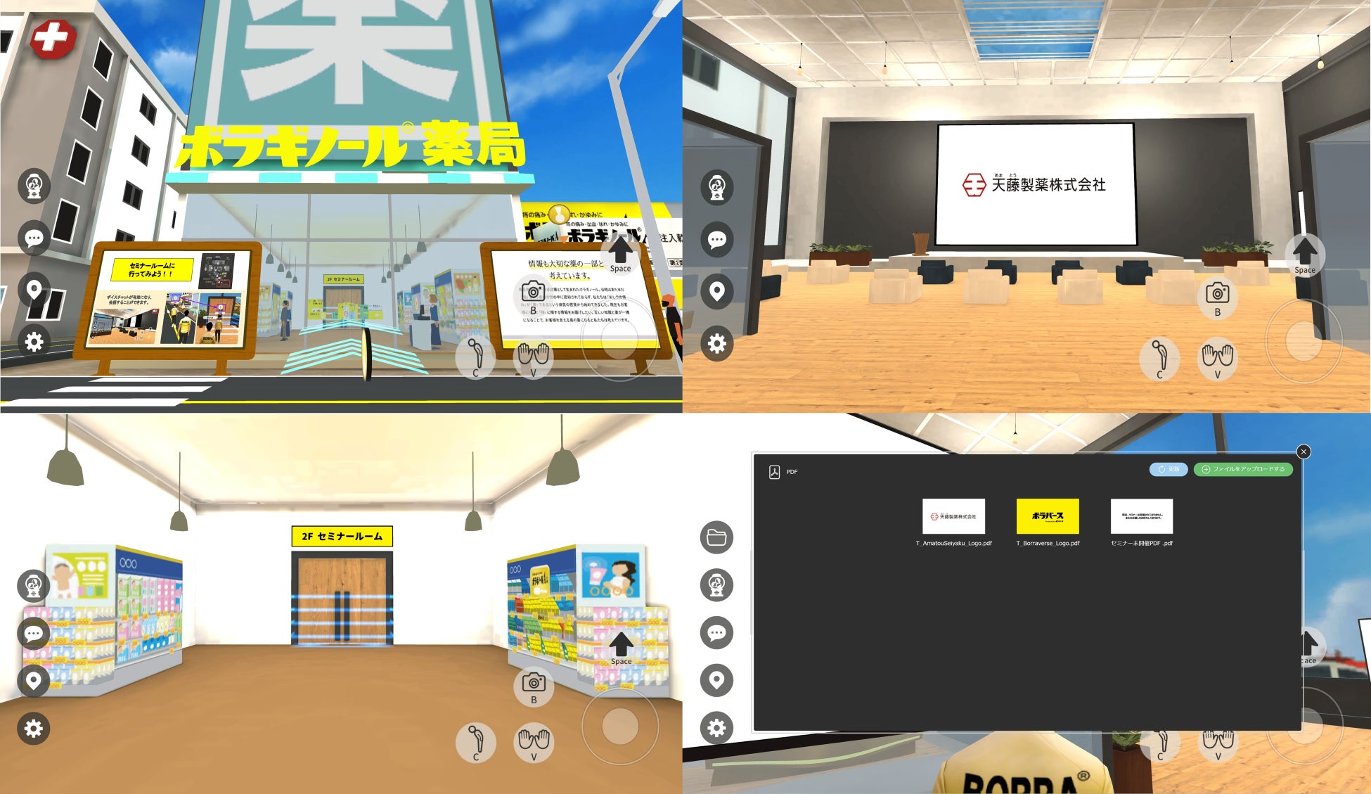 DNPは、バーチャルとリアルの空間の良さを掛け合わせ、人々がアクセスする時間・場所を問わずに楽しめて体験価値を高める機会を提供する「XRコミュニケーション®事業」*2を展開しています。この事業で培った技術・ノウハウ等のDNPの資産を活かし、これまでは「ボラバース」内に、医療関係者と天藤製薬の社員間のコミュニケーションを活性化させるセミナーホールを設置していましたが、今回新たに、メタバース内のセミナールーム等で生活者、医療関係者同士がコミュニケーションできる機能を提供しました。この機能は、「継続的な顧客、生活者とのコミュニケーション」を強化するという天藤製薬の目的に沿って開発したものです。