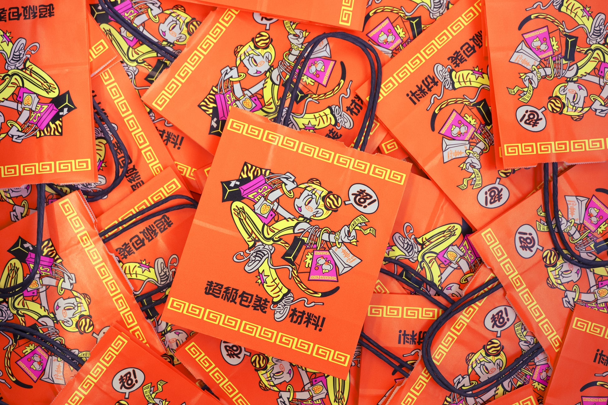 環境にやさしい水性フレキソ印刷で、極彩色の世界観と躍動感あふれるイラストを鮮やかに表現した ショッパーをプレゼント!