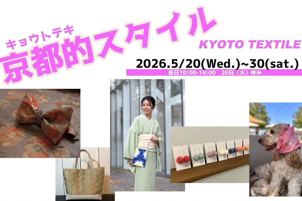 京都の伝統工芸を現代のライフスタイルに取り入れる展示販売イベント「京都的(テキ)スタイル」の第二回開催が決定しました。2026年5月20日(水)~30日(土)、カフェギャラリーときじくにて開催します。京都の伝統工芸に加え、今回は愛知県・有松絞りの「つゆくさ」をゲストに迎え、地域を越えたものづくりの魅力を発信します。また、当社(株式会社loco y tanto、本社:京都府京都市)が展開する西陣織ドッグウェアブランドMiyakoも、前回に引き続き出展いたします。犬用の晴れ着や小物を通じて、伝統工芸をより身近に感じていただける新しい切り口をご提案いたします。