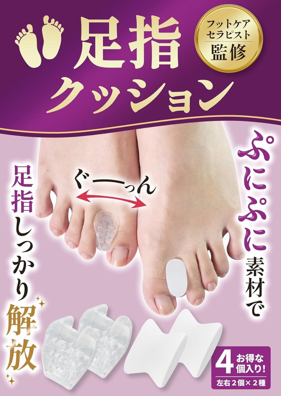 1)グミタイプ:もっちり感触で気持ちよく、足指の重なりを防止。