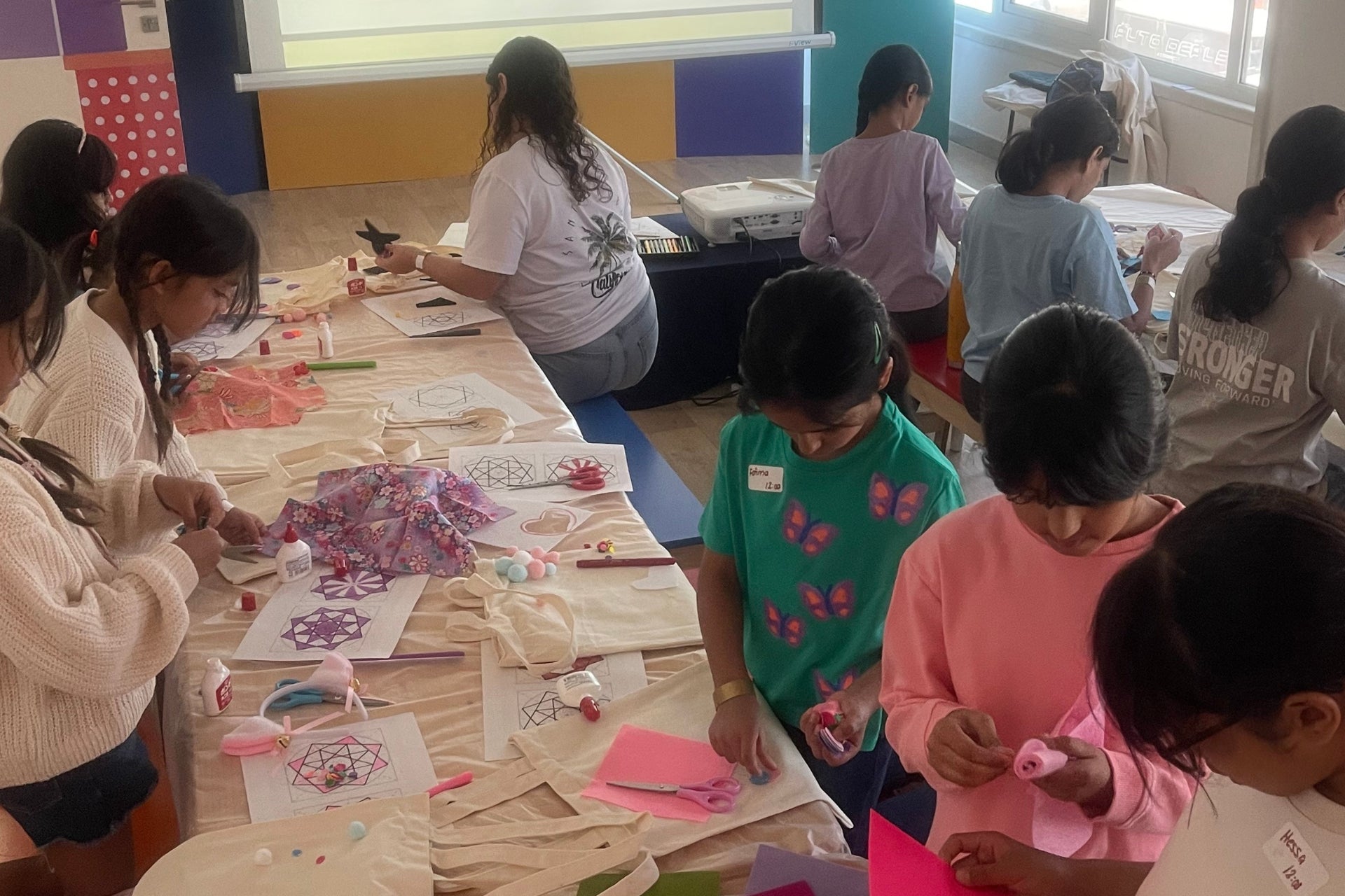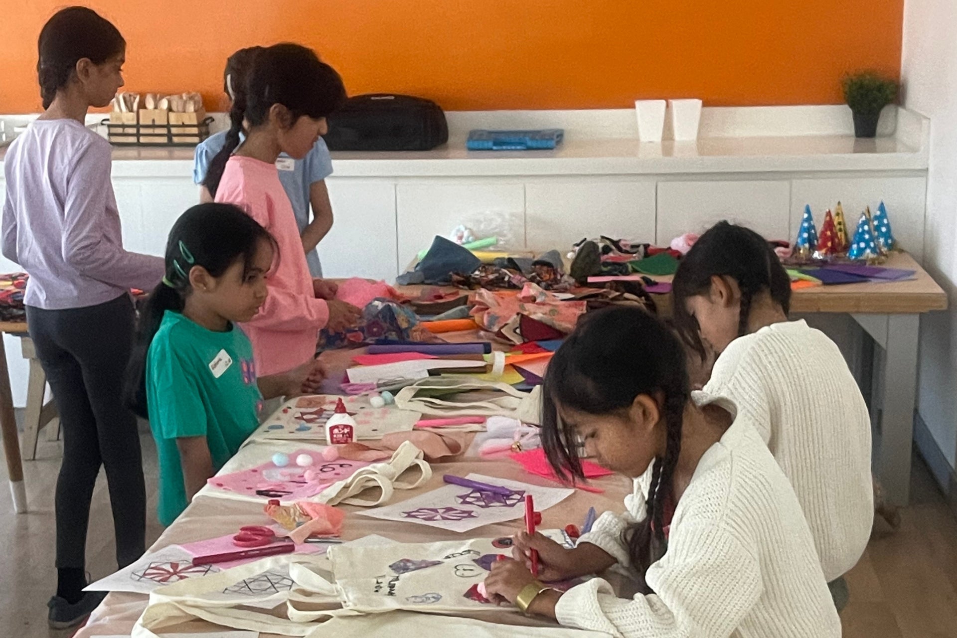 4歳から13歳までの子どもたちが参加し、「デザイン思考」を活用した学びを通して、アラブの伝統的な幾何学模様をモチーフにしたエコバッグ制作に取り組みました。