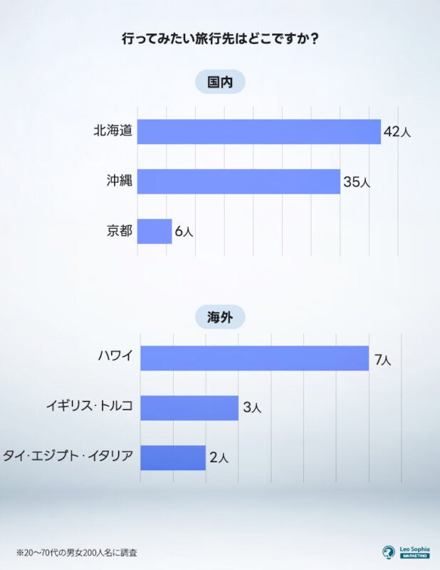 今回は旅行の行き先に悩んでいる方のために、行きたい旅行先に関するマーケティングリサーチを行いました。