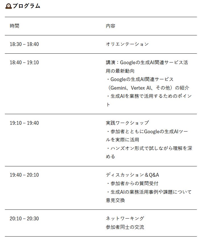 近年、AI技術は私たちの暮らしや仕事の中に急速に広がり、業務の効率化に欠かせない存在となっています。一方で、AIを“使いこなせる人”と“そうでない人”の差が、IT人材不足の一因にもなっていると、私たちプロエンジニア株式会社社(所在地︓京都府京都市、代表取締役︓森 ⿇⾥)は考えています。IT人材不足解消のために、元Googleエンジニアを講師に迎え、生成AIの活用を実践的に学べる無料セミナーを開催します。