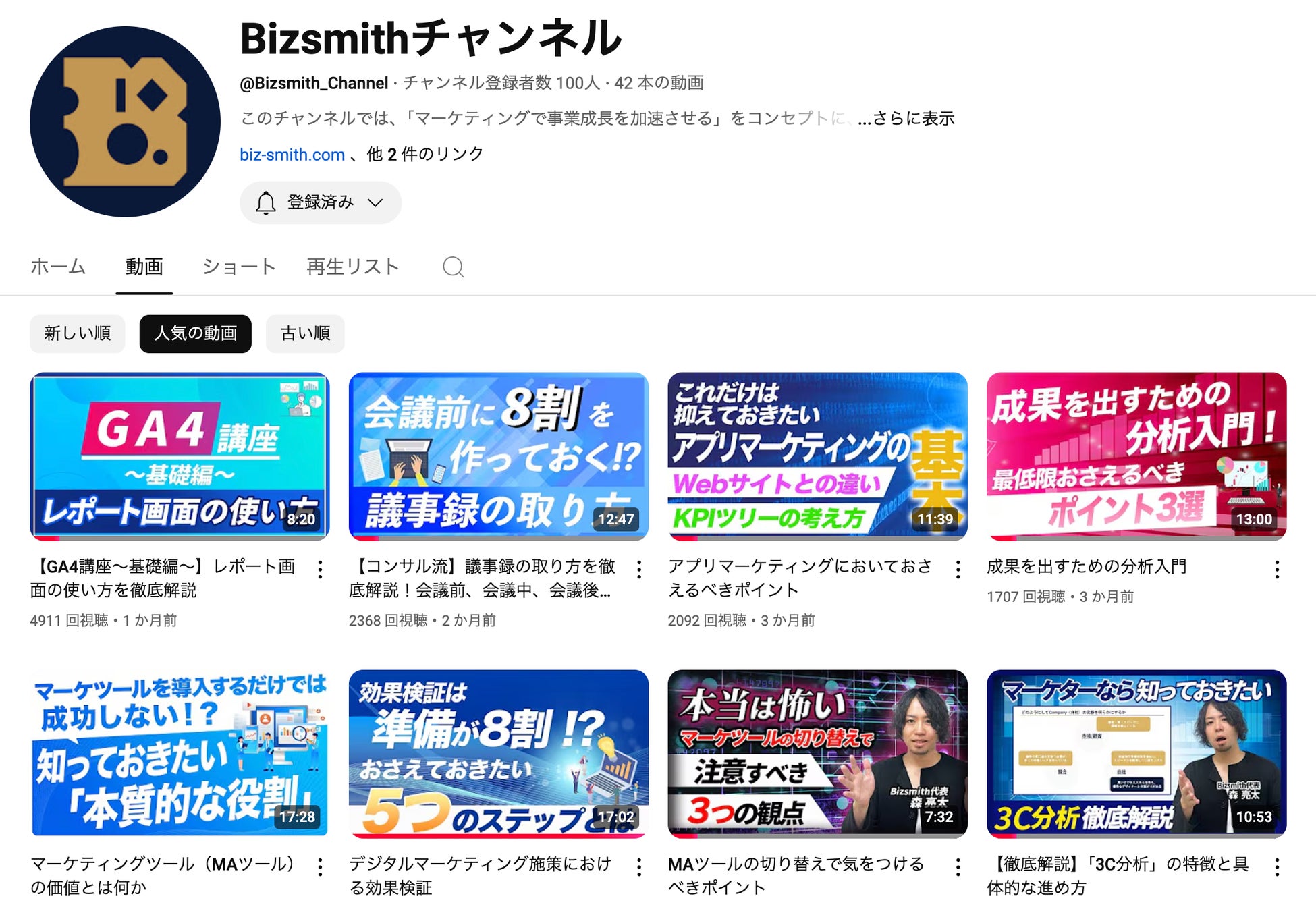 マーケティングツールの総合支援を行う合同会社Bizsmith(本社:東京都中央区、代表:森亮太)は、公式YouTubeチャンネルとして「Bizsmithチャンネル」を開設。2025年1月に、チャンネル登録者数100人、総再生数1.6万回を突破しました。