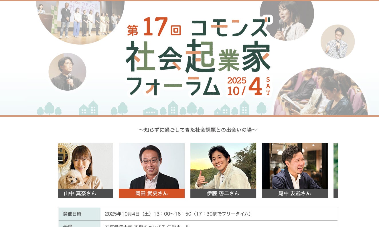 第17回コモンズ社会起業家フォーラムに代表の伊藤が選出されました&登壇します