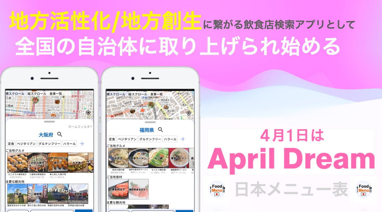 「食事比較」の店検索アプリ「日本メニュー表」を提供するFoodmenu.world株式会社は、4月1日を夢を発信する日にしようとするApril Dreamに賛同しています。このプレスリリースは「Foodmenu.world株式会社」の夢です。