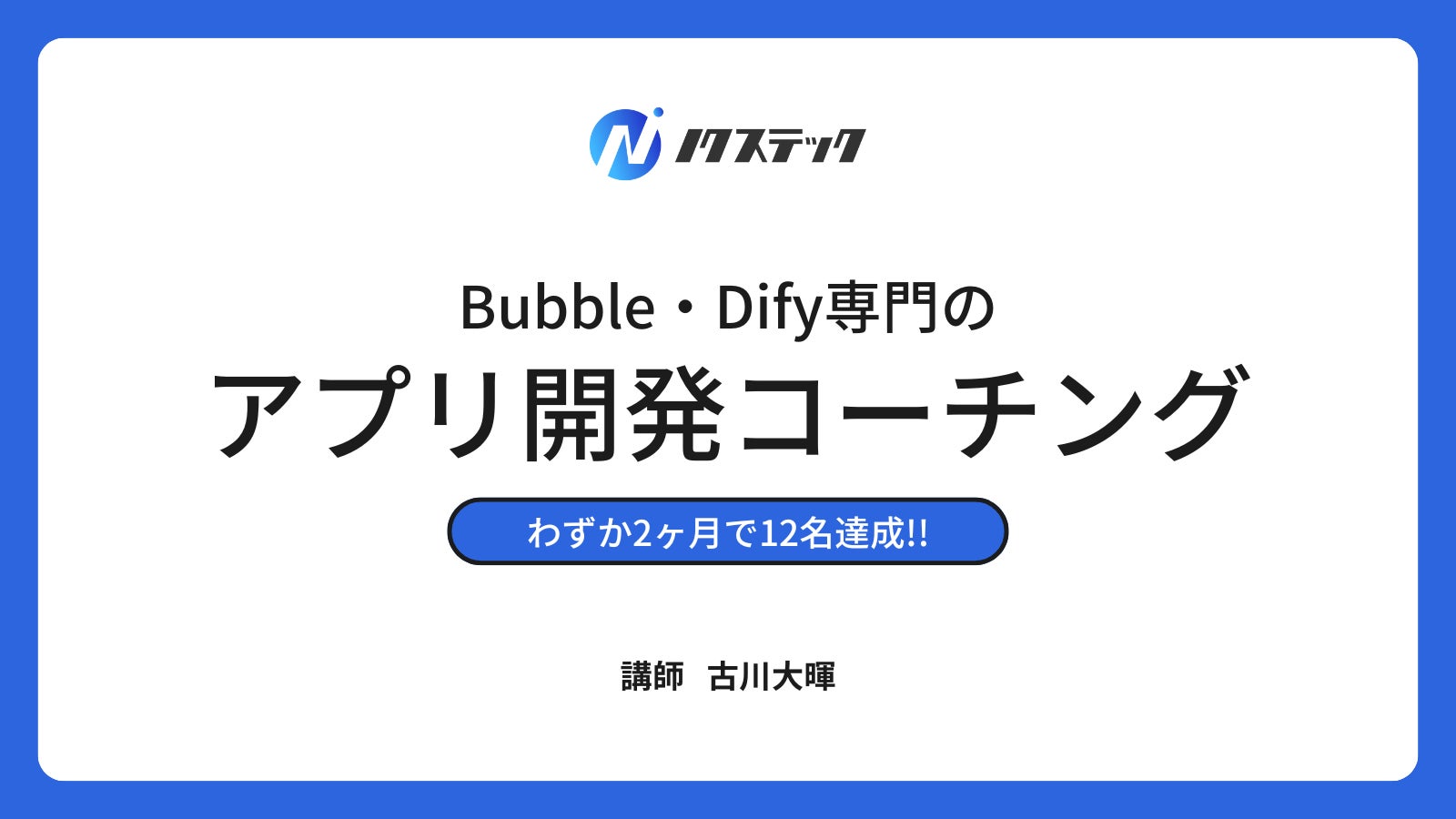 このコーチングサービスでは、受講者一人ひとりの目標やプロジェクトに寄り添った個別指導を通じて、Bubble・Difyを活用したビジネス変革を実現するためのスキル習得を全力で支援し、2025年中に100社への導入を目指します。