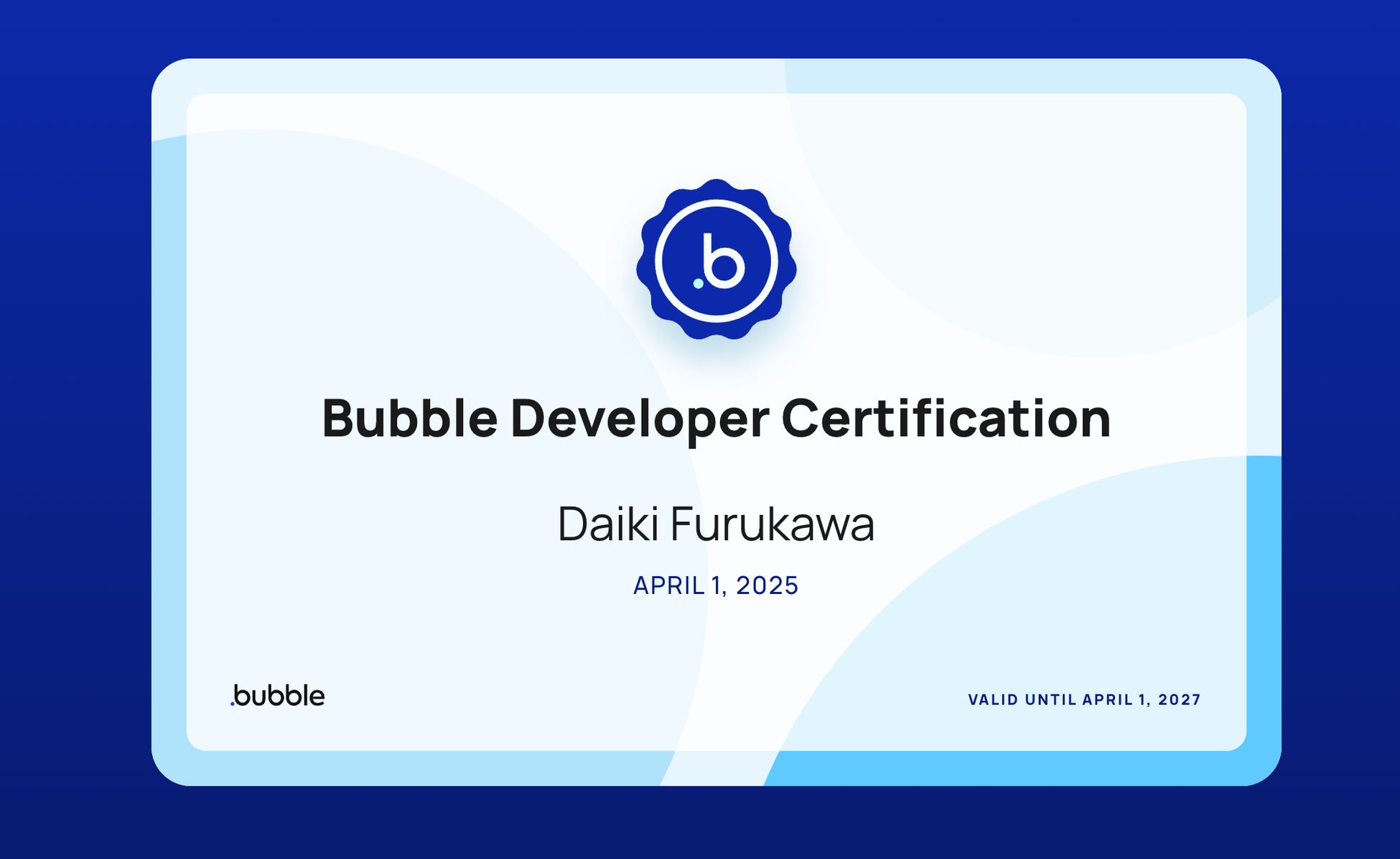 Bubble公認 Silver Agency の実績を持つ認定開発者が全体をディレクションし、法人・個人のプロジェクト成功を最短ルートで加速します。