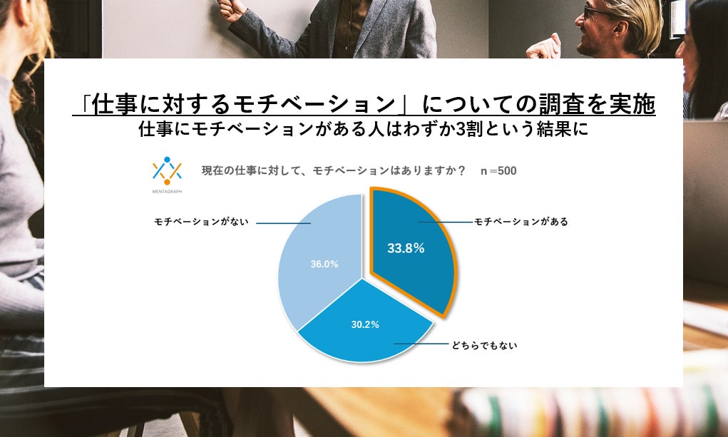 MENTAGRAPH、世代別「仕事に対するモチベーション」についての調査を実施 仕事にモチベーションがある人はわずか3割という結果に