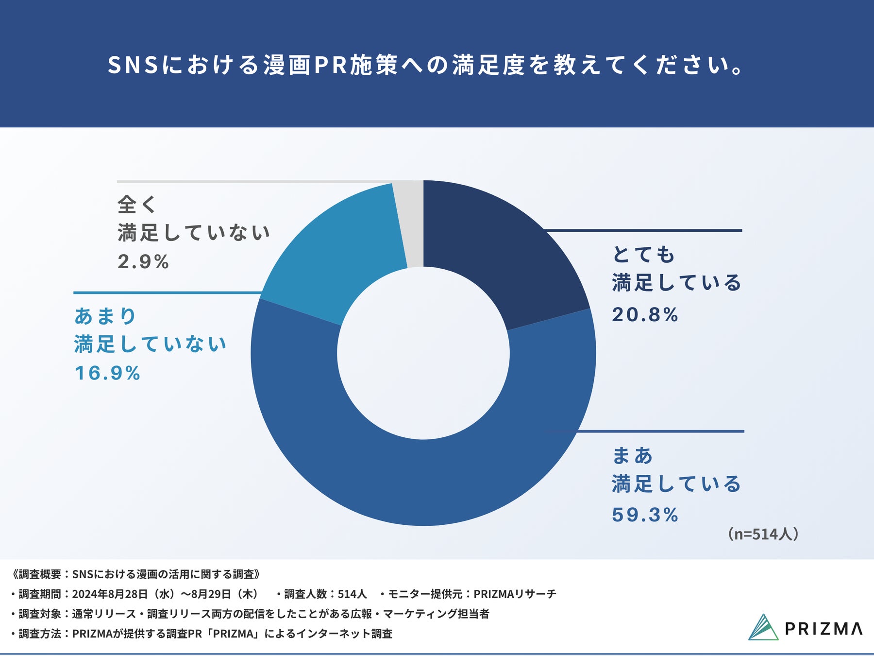 約8割の方が「SNSにおける漫画PR施策に満足している」