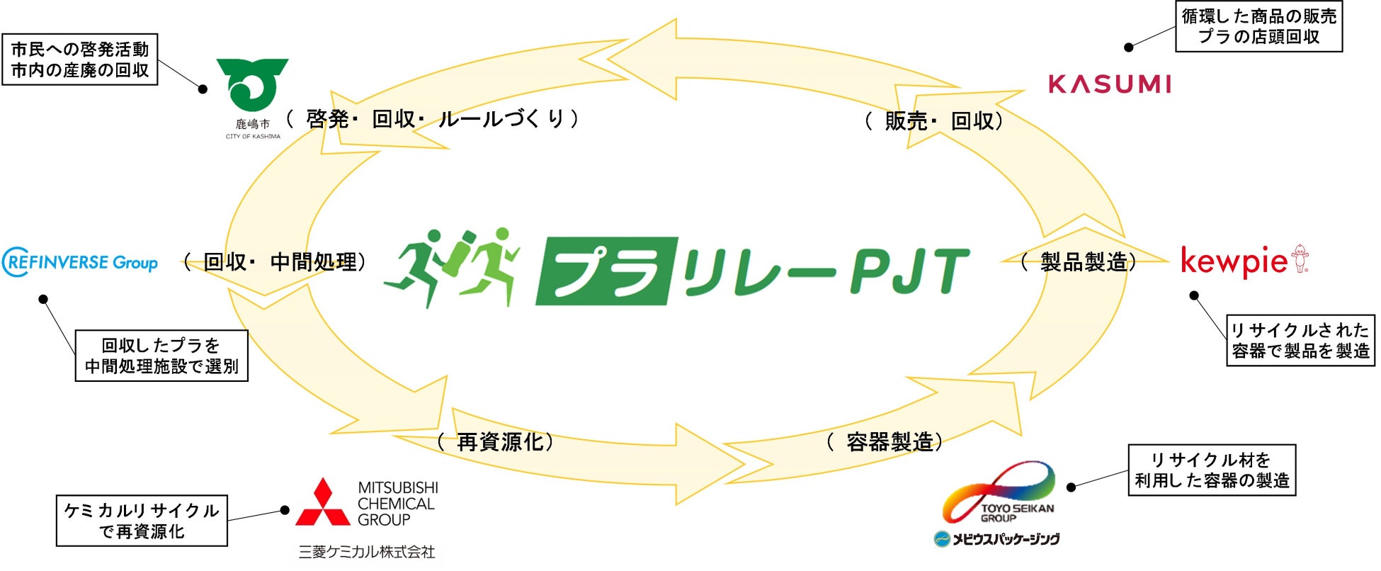 茨城県鹿嶋市(市長:田口伸一、以下「鹿嶋市」)、リファインバース株式会社(代表取締役社長:越智晶 本社:東京都千代田区、以下「リファインバース」)、三菱ケミカル株式会社(代表取締役:下平靖雄・福田信夫 本社:東京都千代田区、以下「三菱ケミカル」)、東洋製罐グループホールディングス株式会社(代表取締役社長:大塚一男 本社:東京都品川区、以下「東洋製罐グループ」)、キユーピー株式会社(代表取締役 社長執行役員:髙宮満 本社:東京都渋谷区、以下「キユーピー」)、株式会社カスミ(代表取締役社長:塚田英明 本社:茨城県つくば市、以下「カスミ」)の6者間で、茨城県内におけるプラスチック容器の循環を目指すことを目的に、本日2月14日(金)に包括連携協定を締結いたしました。本取り組みは「プラリレープロジェクト」と称して、6者それぞれがプラスチックをリレー形式で繋ぎ、循環を目指す実証実験プロジェクトです。