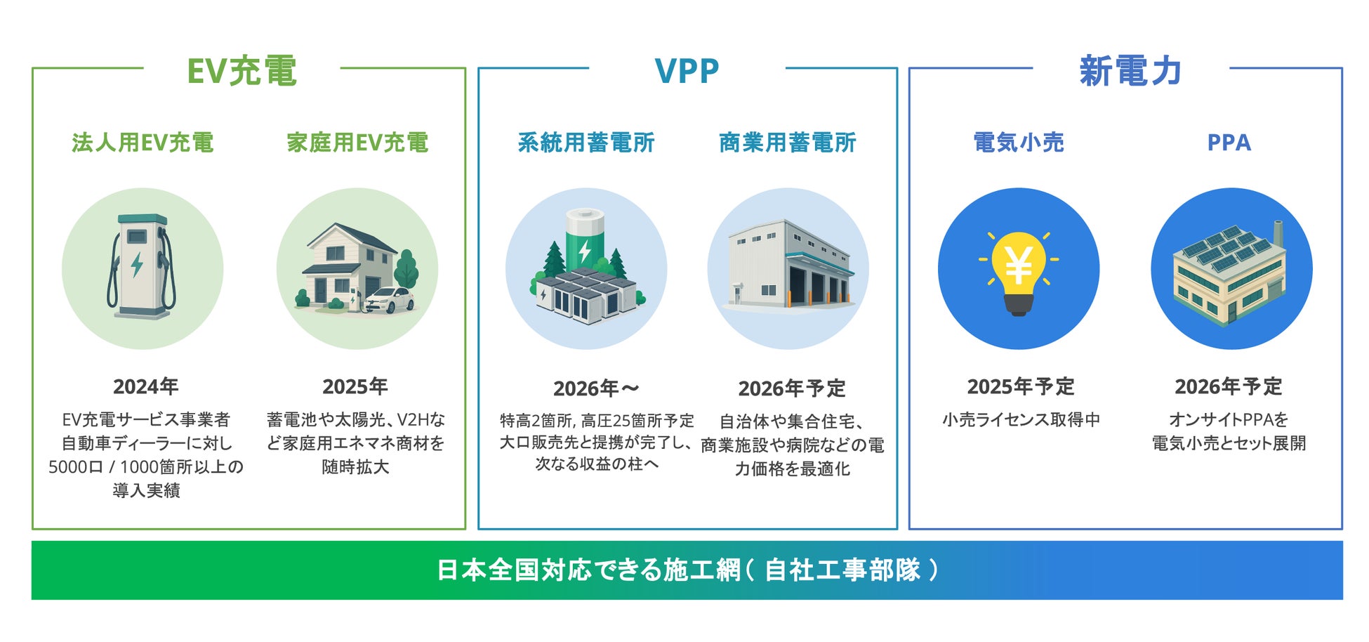 今回の資金調達で採用を加速させると共に、商業用蓄電池を活用した仮想系統用発電所(分散電源)の開発を推進します。