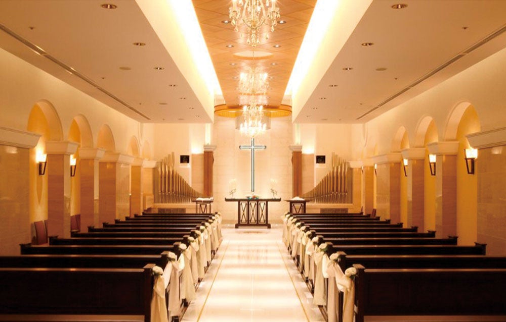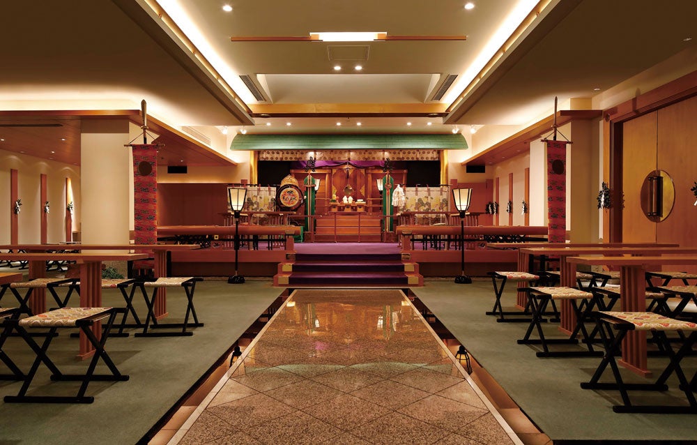「トゥールダルジャン 東京」は、すべてがフランス貴族の邸宅を思わせる空間。ルイ14世の時代とルイ16世の時代を表現している荘厳なレセプションホールで執り行うセレモニーは、気品ある装花とキャンドルの光で神聖な雰囲気を演出。ここだけのエレガントで贅沢なマリアージュに。このほか「ホテルニューオータニ」内のチャペルや神殿での挙式も、ふたりのスタイルや参列者の人数に合わせて選べます。
