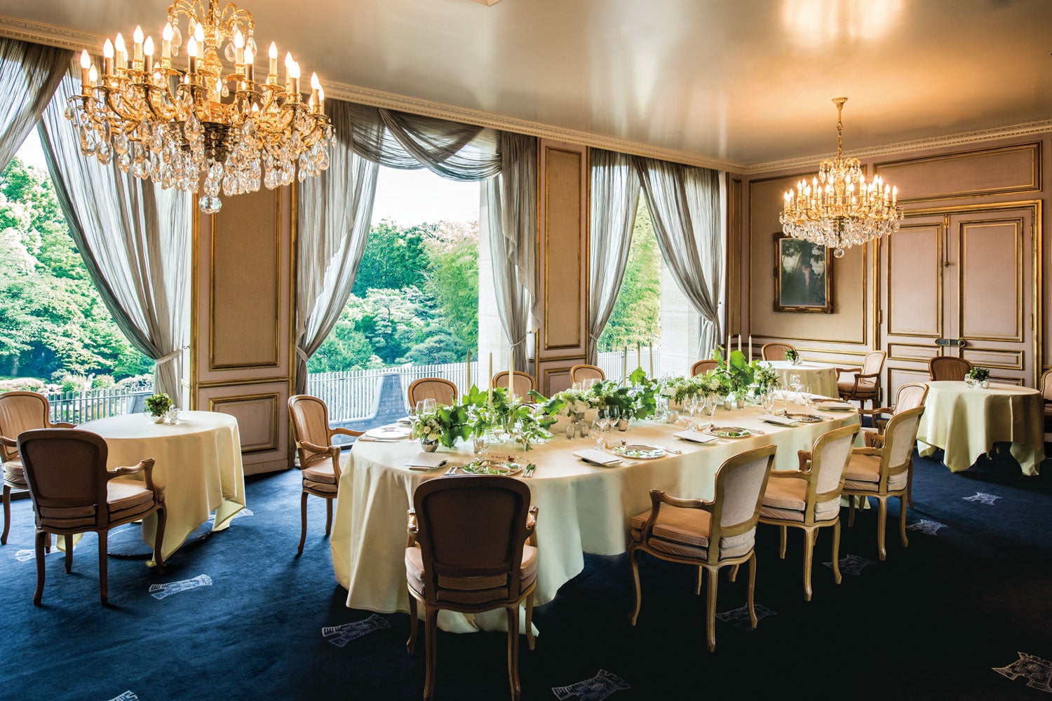 パーティが始まるまでの時間、ゲストが過ごすウエイティングルーム。フランスの歴史を感じる空間でゲスト同士ふたりとの思い出や空間の印象を語り合ううちにこれから始まる祝宴への期待がさらに高まっていきます。
