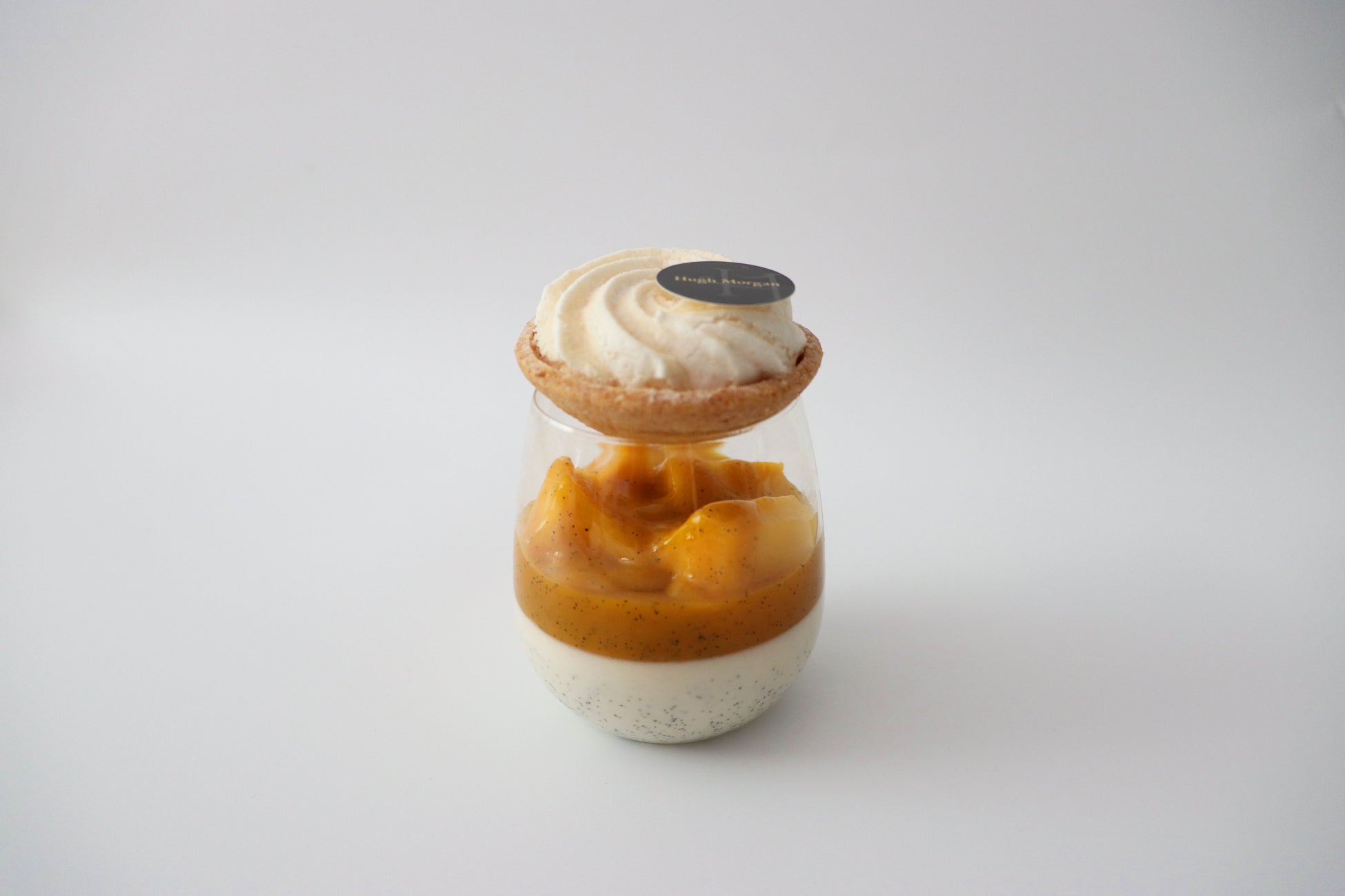 インドネシア産タヒテンシス種バニラをじっくりとローストし、芳ばしい香りを引き出したパンナコッタに、マンゴーとパッションフルーツのジュレやソース、さらにフレッシュなマンゴーを重ねた、夏だけの特別なグラスデザートです。