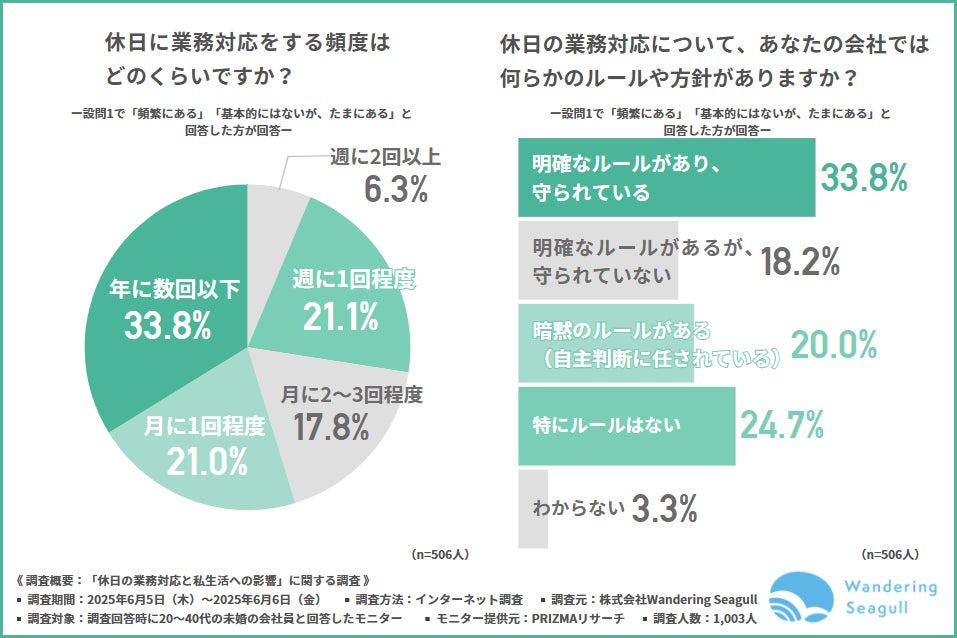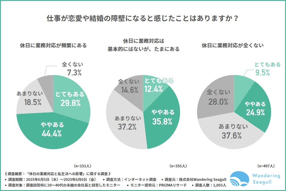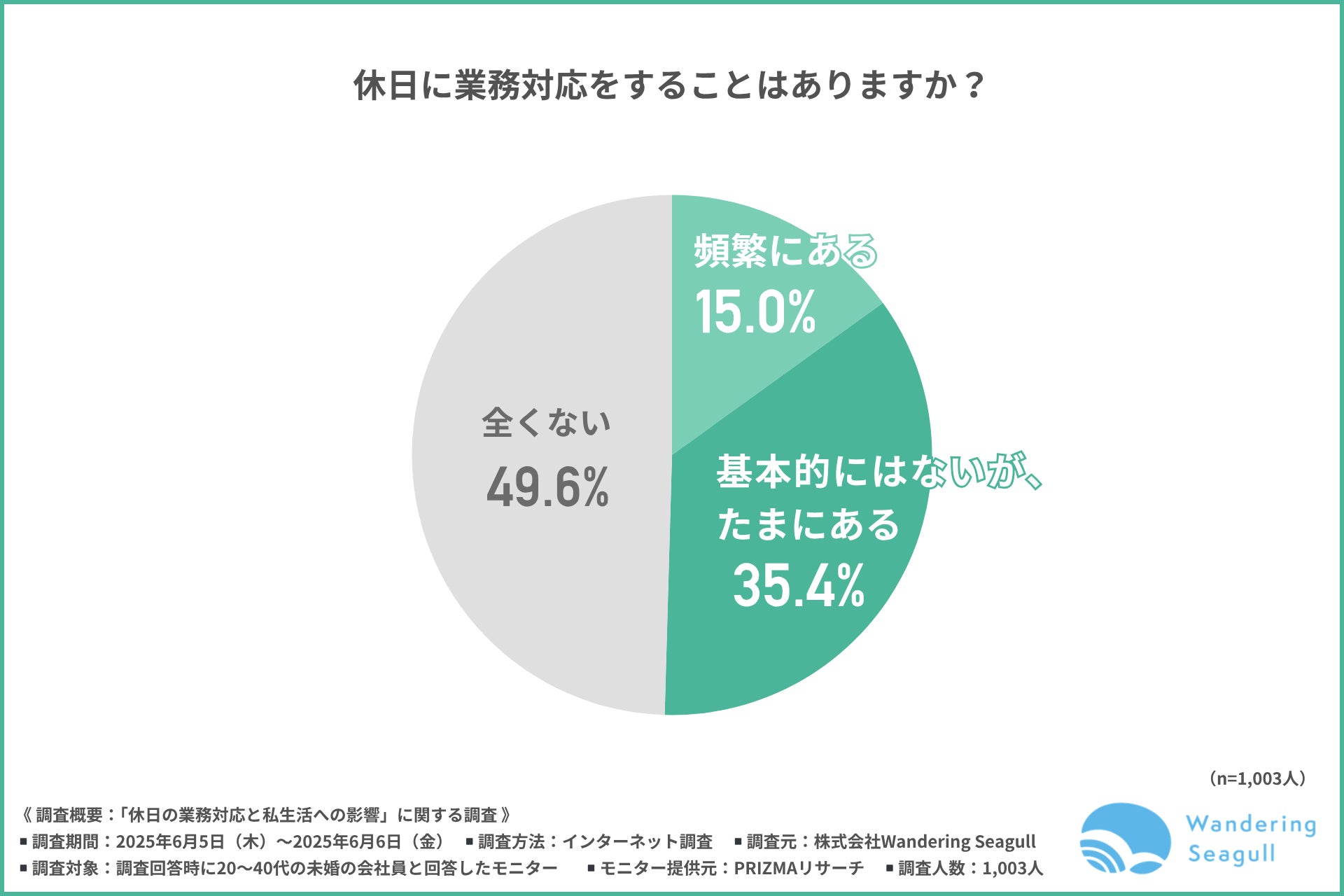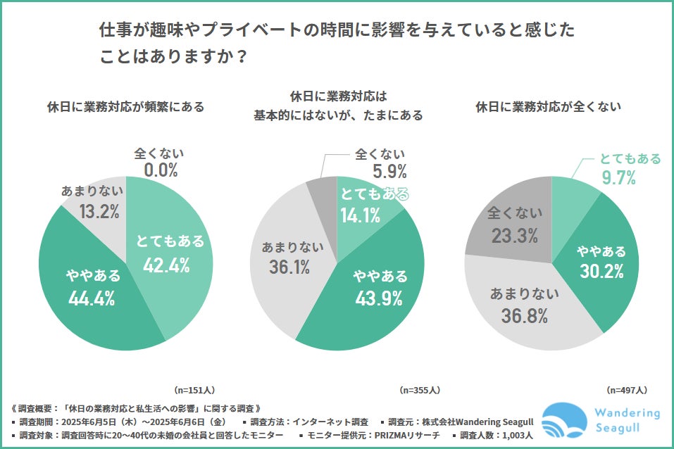 株式会社Wandering Seagull(所在地:新潟県新潟市、代表取締役:田村 広流)は、20〜40代の未婚の会社員を対象に、「休日の業務対応と私生活への影響」に関する調査を行いました。
