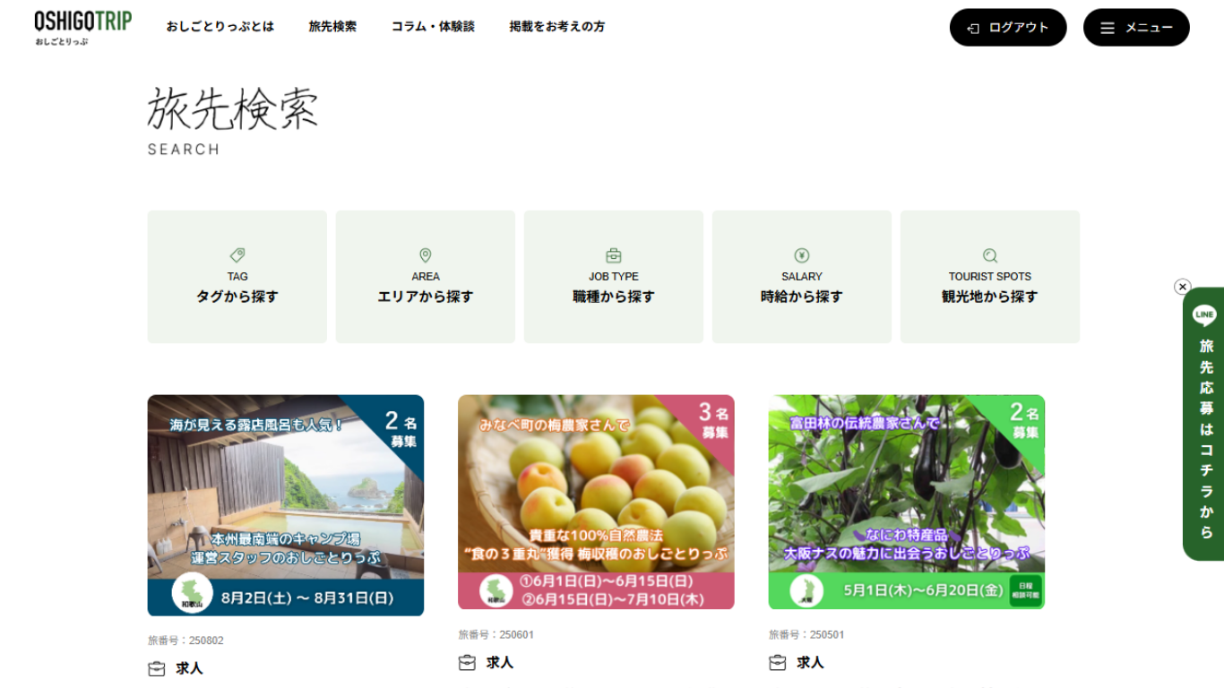 「地域を知る旅」をコンセプトに短期アルバイト求人サービス「おしごとりっぷ」を展開するLT Works株式会社(本社:大阪府大阪市)は、このたびホームページを全面リニューアルしました。