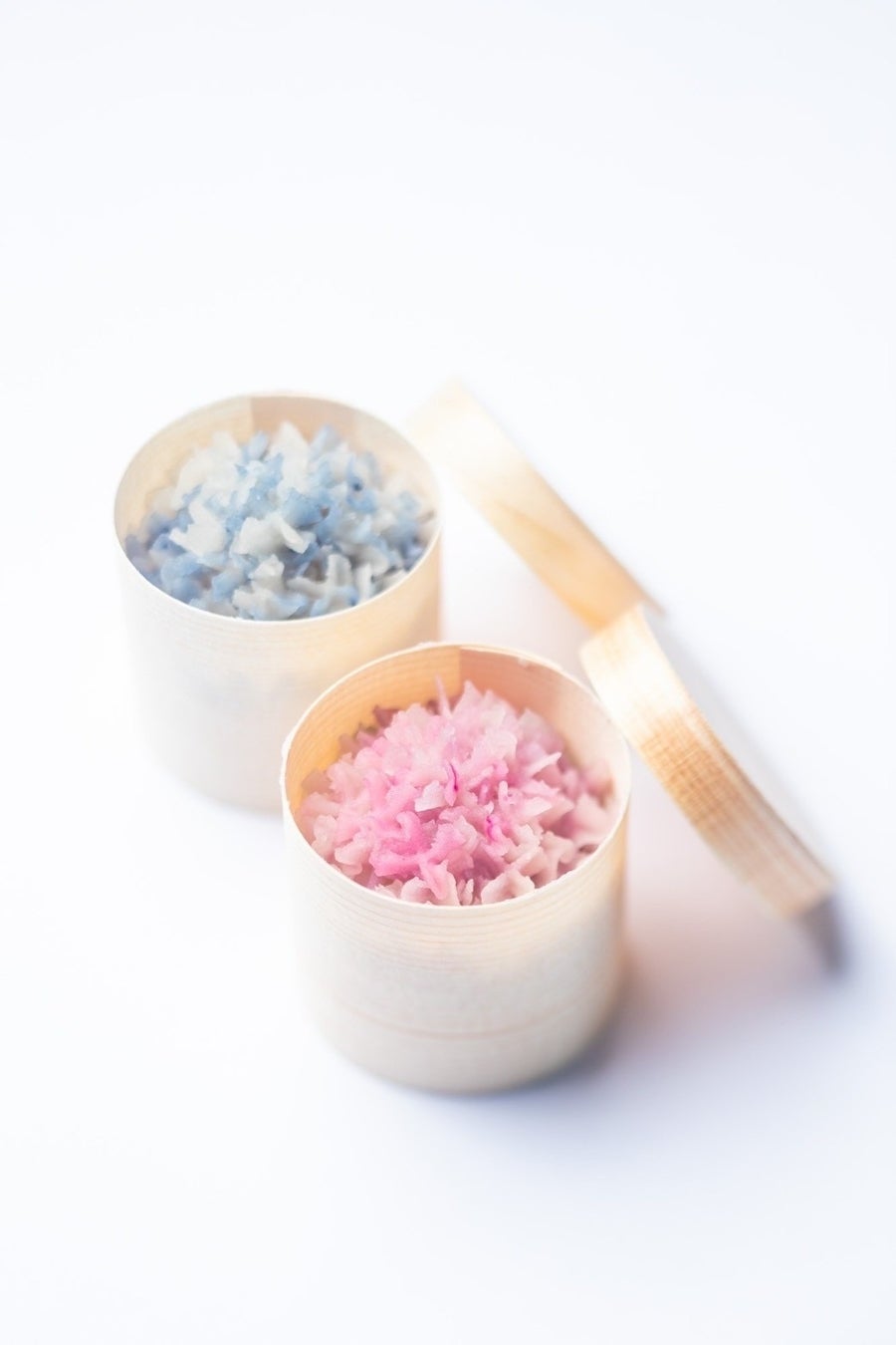 和菓子 日果 のこはぎ「雛芥子(ポピー)」「ミモザ」の2種類の花絞りを体験できます。