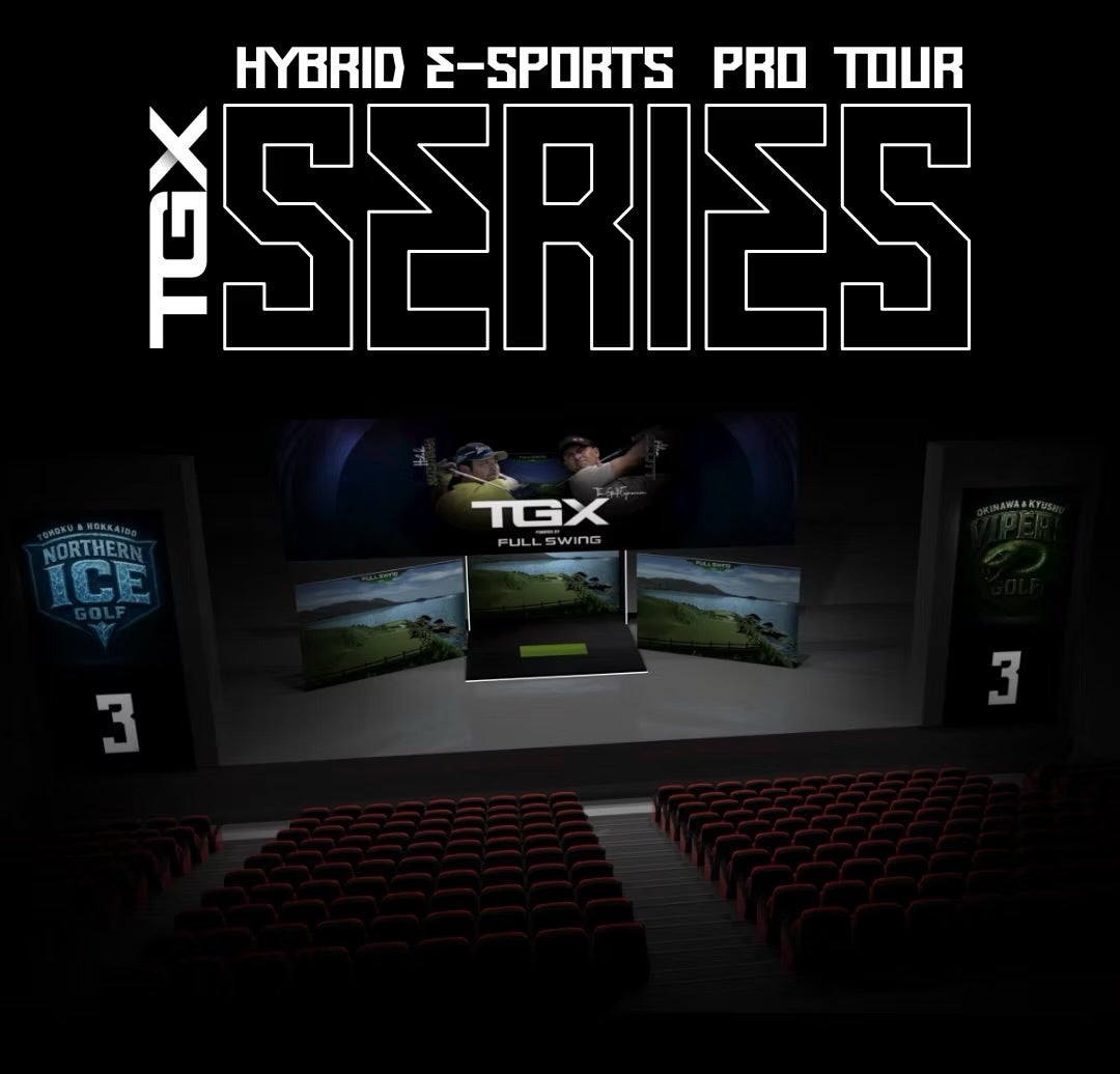 「TGXシリーズ」は、現実世界と仮想空間をボール1つがつなぐ、次世代型のハイブリッドeスポーツゴルフツアー。 世界のトッププレーヤーが信頼する米国発の先進技術 “FULL SWING TECHNOLOGY”シミュレーションシステムを使い、音楽・照明・歓声に包まれたアリーナで、リアルとデジタルが融合する熱戦が展開されます。