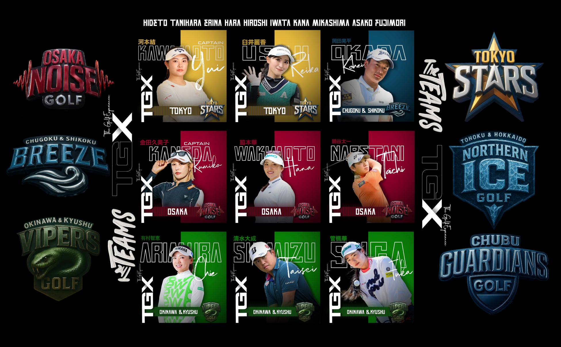 谷原秀人、有村智恵、河本結、金田久美子、脇元華ほか、国内外の実力派プレーヤー 若手プロ・大学ゴルファー・アマチュア代表も登場し、世代を超えた競演を実現します。プロとアマチュアが、地域を代表するチームとして戦う。観る人も一緒にチームや選手と盛り上がる“新しいゴルフカルチャー”を日本から発信するのがTGXです。