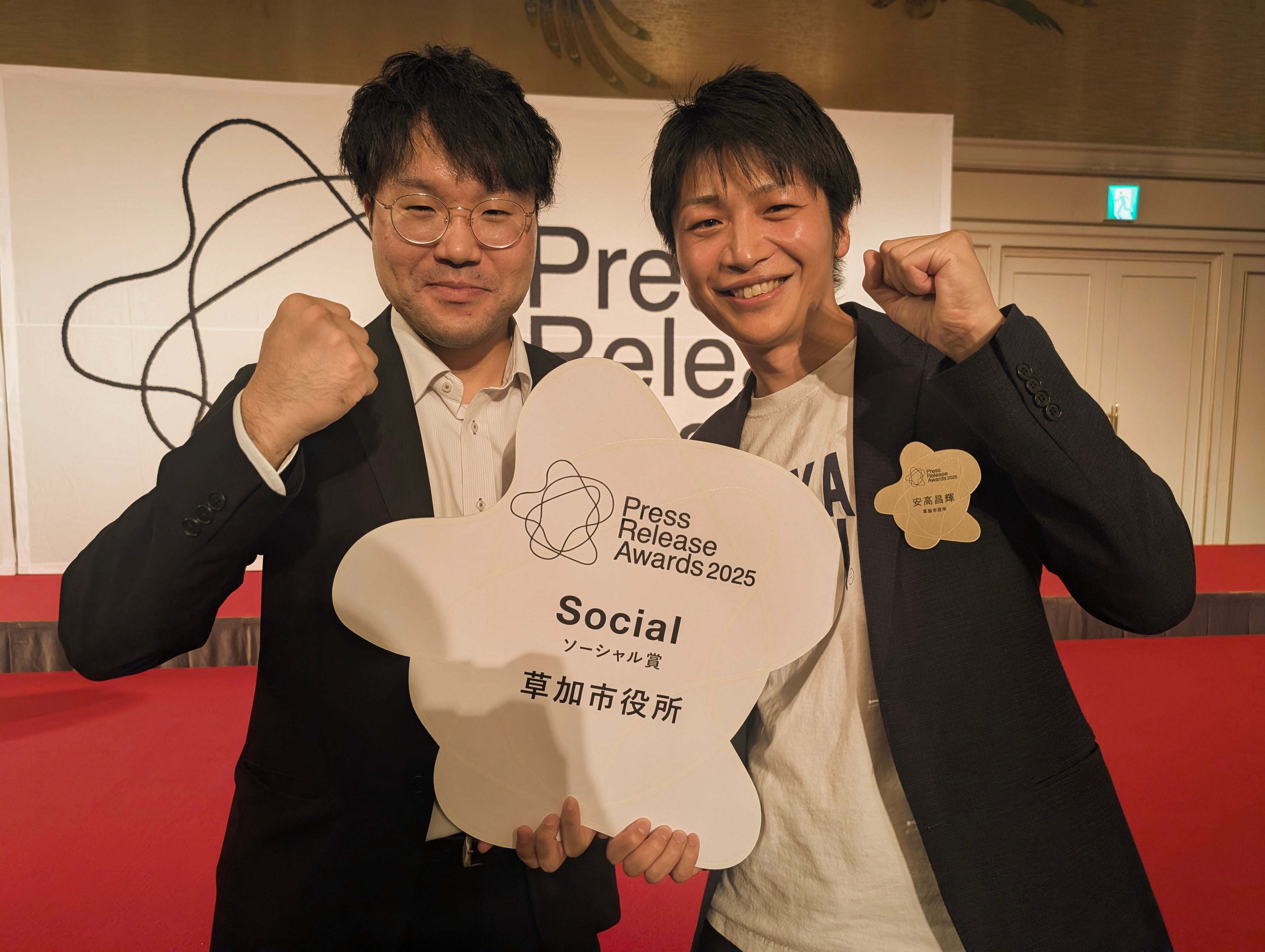 「プレスリリースアワード」は、日本国内で発信されたプレスリリースを対象に、社会性・公共性・共感性・将来性の視点から表彰するアワードです。今年は過去最多となる4,573件のエントリーがあり、その中から最終選考を経て11件がプレスリリースアワードに選ばれました。なお、プレスリリースアワードは10の部門賞に別れており、草加市は地方自治体としては全国初となる「ソーシャル賞」を受賞いたしました。