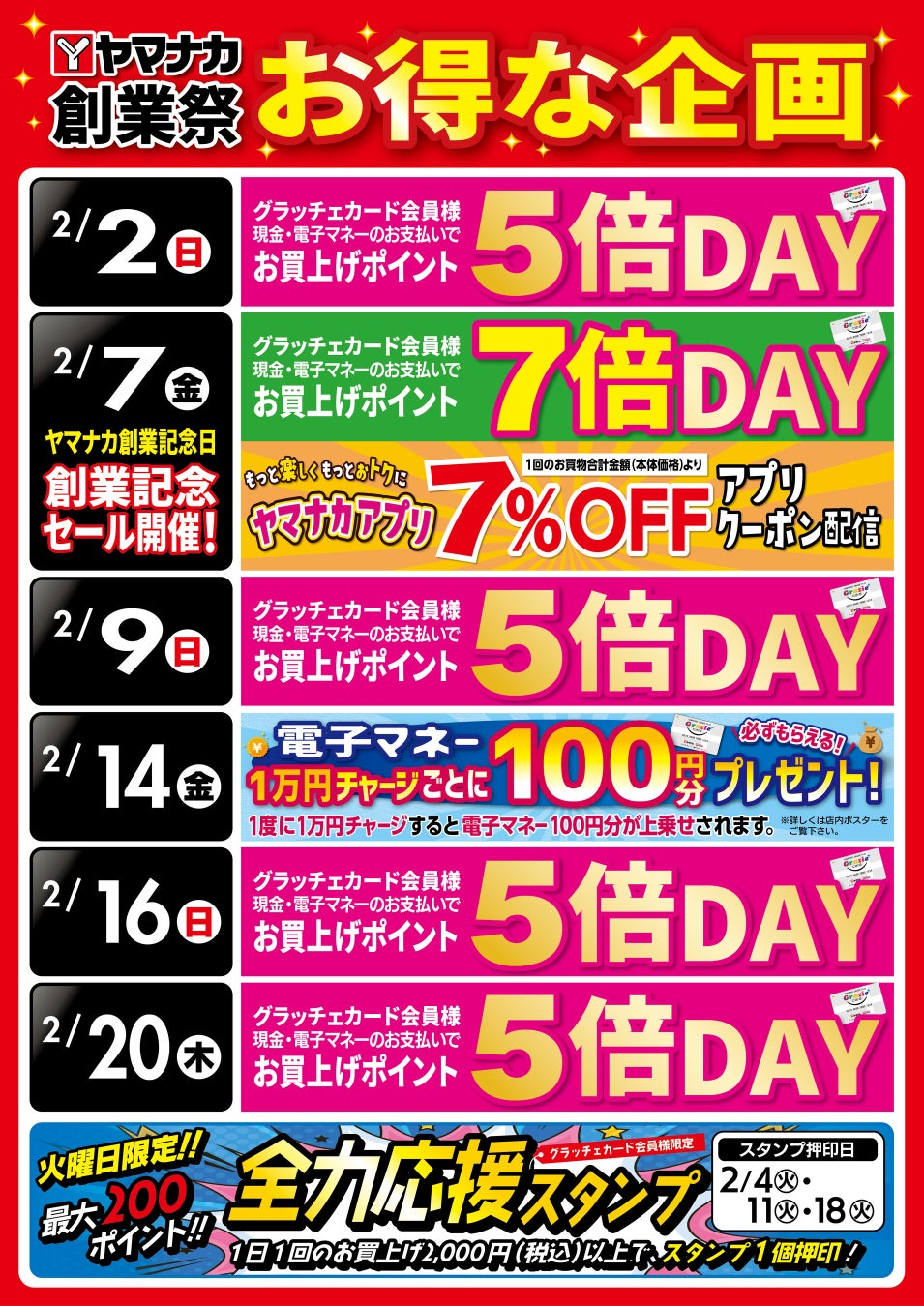 ヤマナカ創業記念日である2月7日(金)には、創業記念セールを開催!