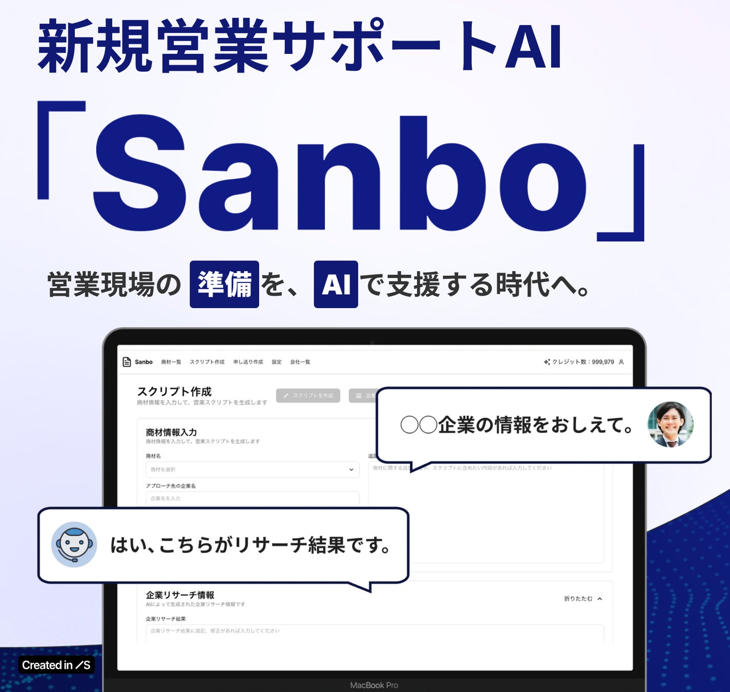 「Sanboは、営業担当者が“準備に追われる時間”を“商談を創る時間”に変えることを目指しています。