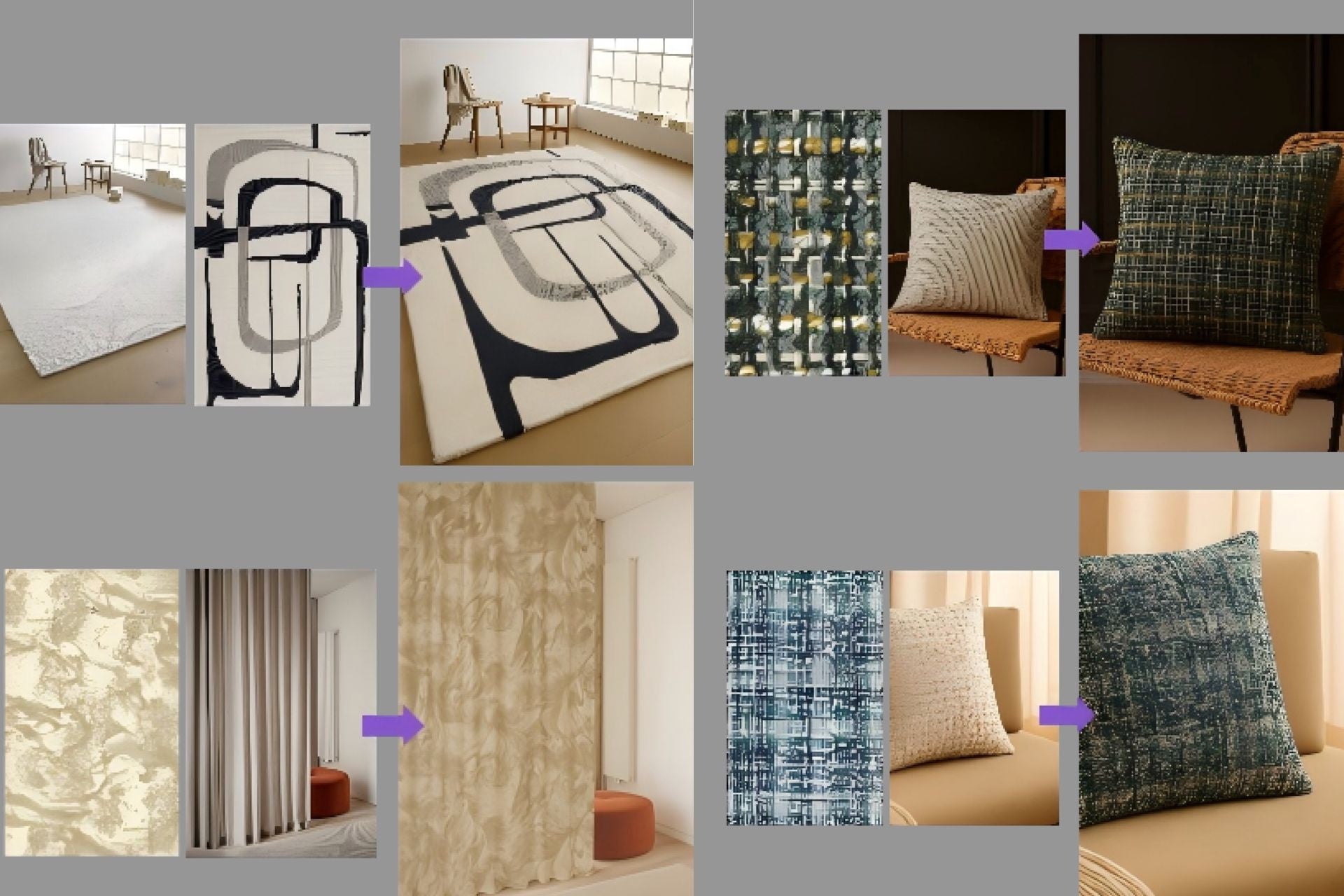 • AI素材置換:家具・壁材・床材などの素材をリアルタイムに視覚的に置換し、デザインの意思決定と提案の提示を支援。