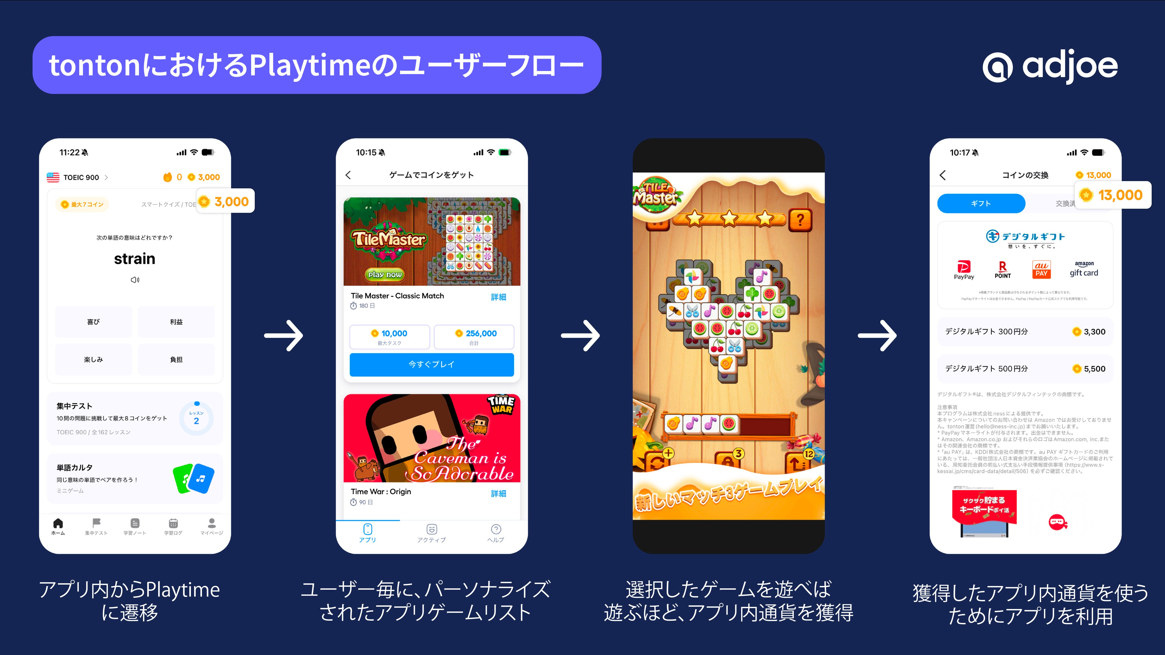 【導入事例】英語を勉強してポイントが貯まる英単語アプリ「tonton」が、広告マネタイズソリューション「Playtime」導入で、売上を2倍に、ユーザーの学習意欲継続の向上も実現!