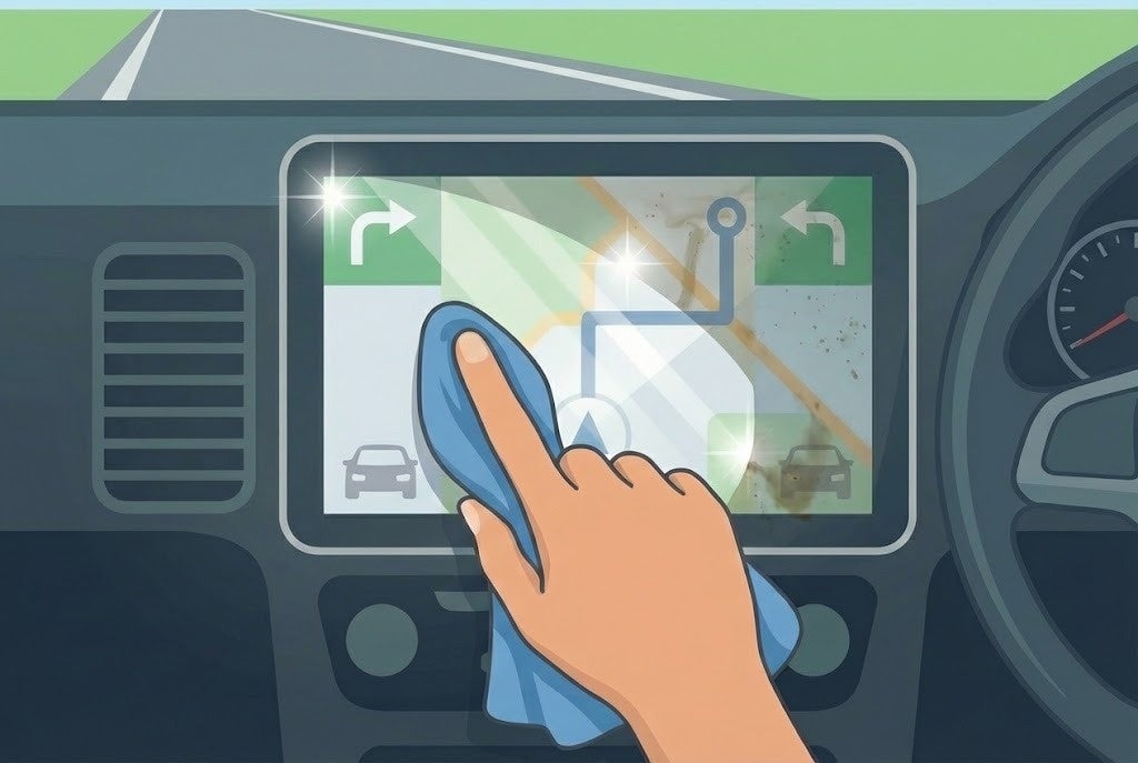 表面には特殊な防汚コーティングを施しており、指紋や汚れが付きにくく、付着しても簡単に拭き取ることができます。また、指すべりが非常に良く、地図のスクロールやタッチ操作がスムーズに行えます。