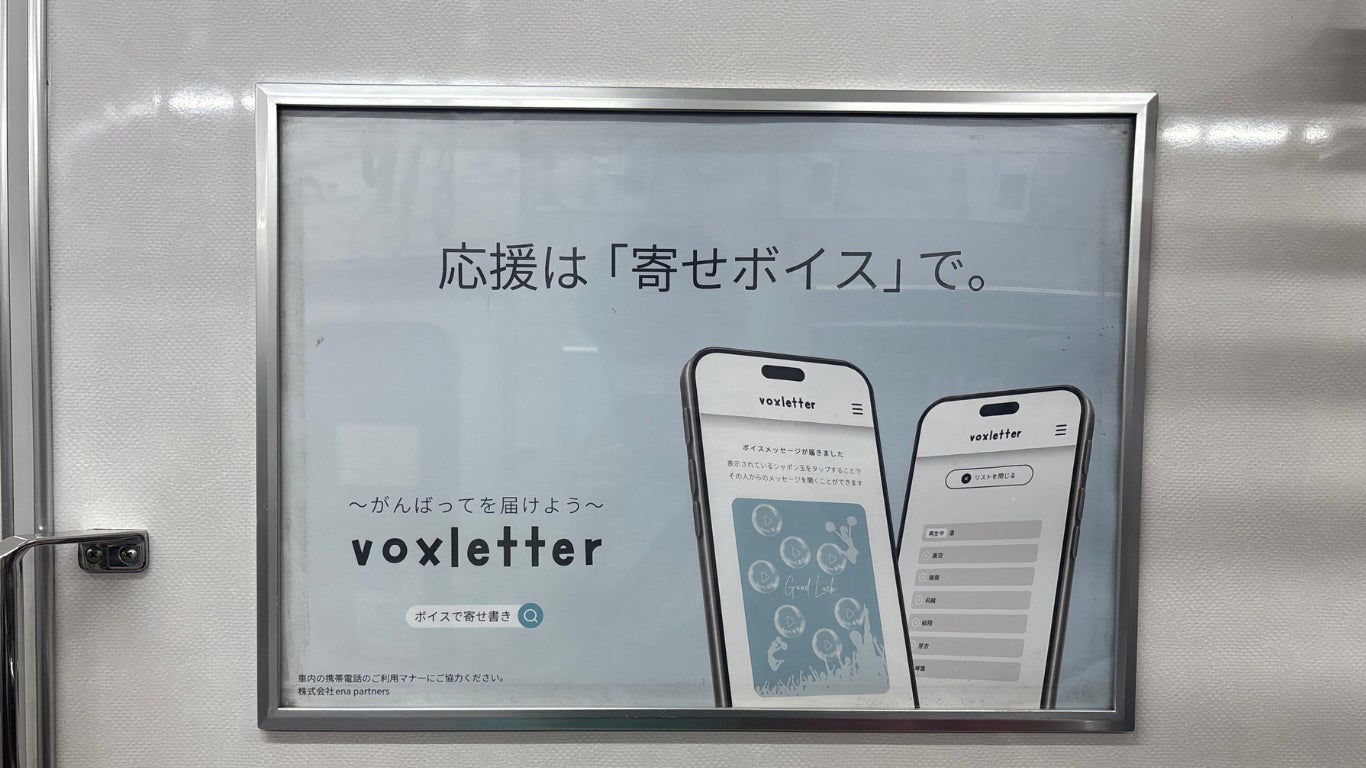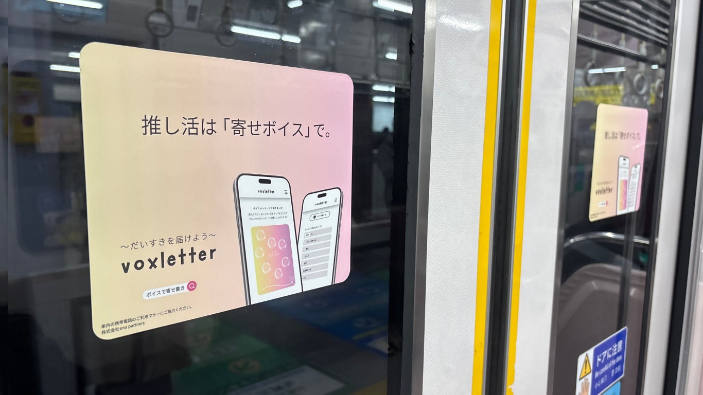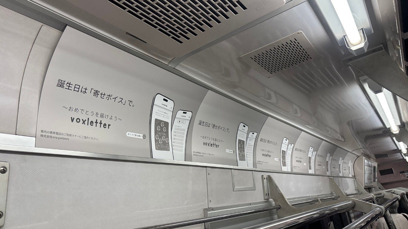 株式会社ena partners(本社:東京都中央区、代表取締役 加藤玲那)は、2025年5月11日まで寄せボイスWebアプリ「voxletter」の車内広告によるトレインジャックを京急電鉄電車内にて実施しております。