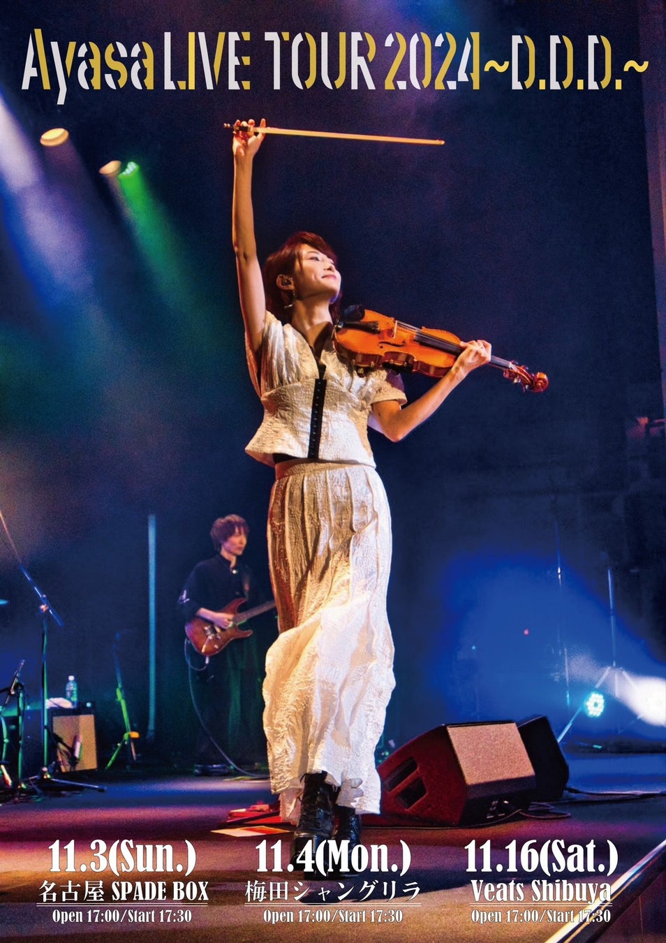 ツアー初日は11月3日(日)、名古屋のSPADE BOXで開幕し、翌11月4日(月・祝)には大阪の梅田シャングリラで公演が行われます。Ayasaの圧倒的なバイオリンパフォーマンスとともに、会場が一体となる感動のひとときをぜひご体感ください。音の世界に浸り、心揺さぶられるひとときをお届けします!