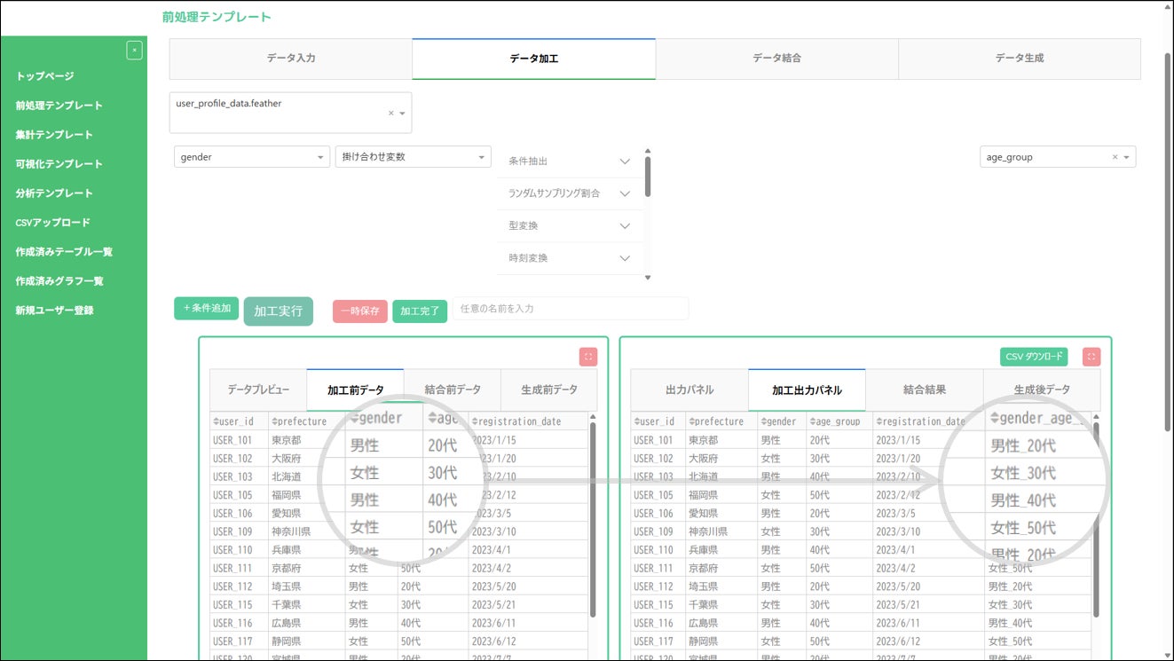 「男性20代」「女性30代」のように、「性別」と「年代」をかけ合わせた新しい分類を作りたい――。