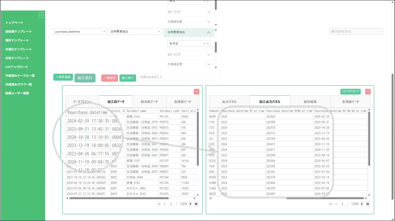 たとえば、みんなで画面を共有しながら進める“分析ミーティング”では、その場でデータを編集・可視化しながら、認識合わせや合意形成を促し、より迅速な意思決定をサポートします。また、専門的な知識やスキルがなくても、マウス操作だけで高度な分析ができるため、これまで外注にかかっていた費用と時間を大幅に節約できます。