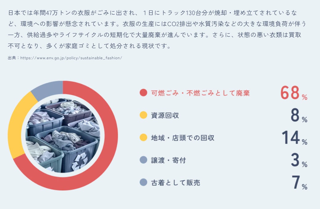 また、ファッションロス削減やCO₂排出抑制といった社会課題への取り組みもデータとともに紹介し、企業としての社会的責任(CSR)への貢献を訴求。パートナー向けページの新設により、企業・ブランド・小売事業者に向けた連携提案も強化しました。デザイン面では、シンプルかつクリーンなトーンを取り入れ、サステナブルな世界観を表現した構成としています。