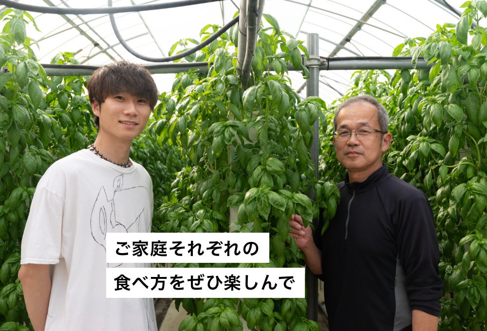 美味しいバジルを皆さまのご自宅に届けるだけではなく、栽培方法を広めていくことも目的のひとつ。若い世代にも農業を受け継いでいきます。